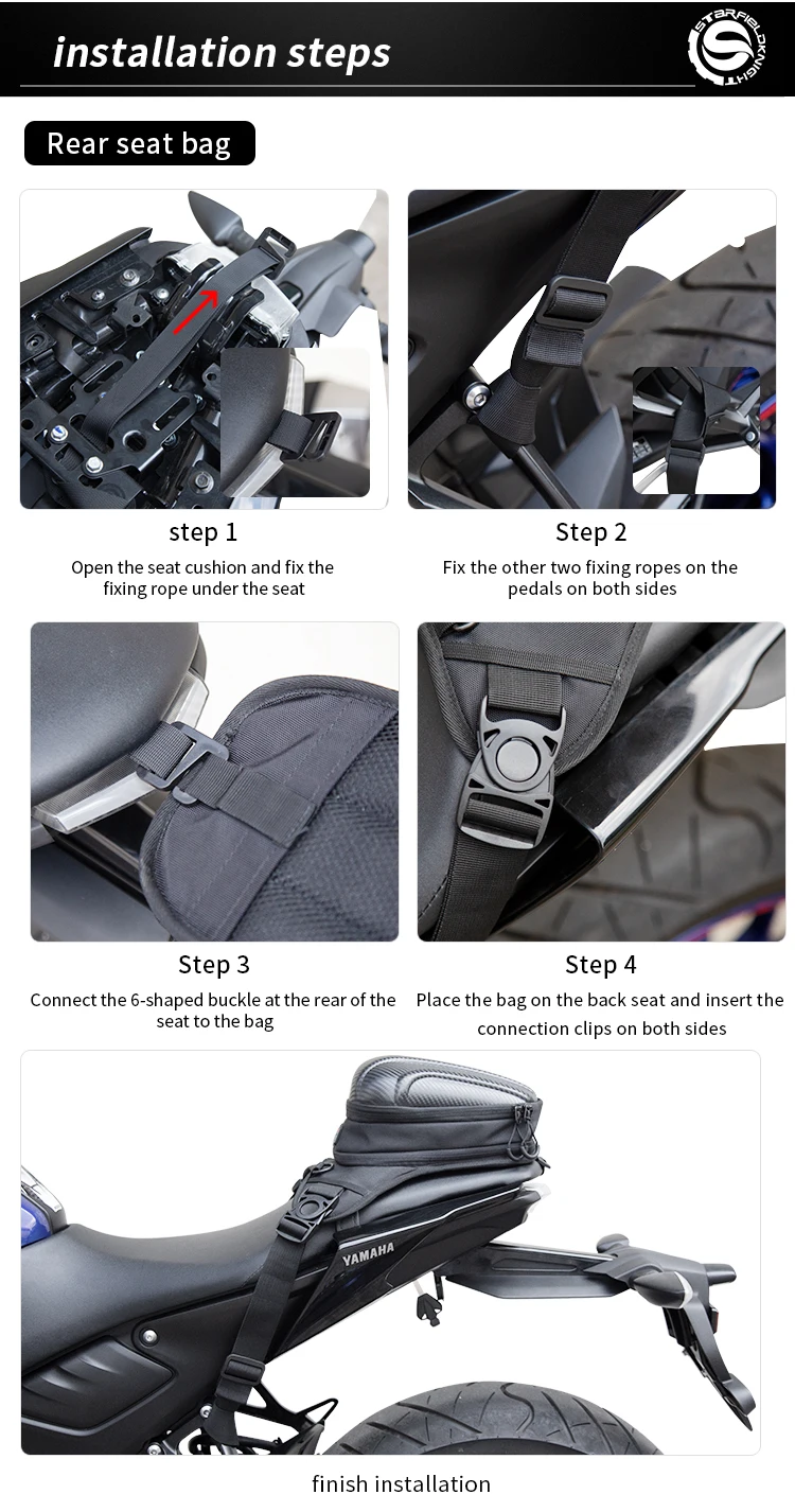 Brand:Star Field KnightProduct name:Motorcycle Back Seat Bag/Crossbody bagModel:SKB-359Colour:BlackSize:Length 24*width 29*height 13.5cmWeight:0.36kgMaterial:Composite polyester/polyester fiberFeatures:Large capacity rainproof,wear-resistant and tear-resistant.