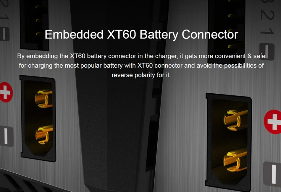 Встраивание разъема аккумулятора XT60 в зарядное устройство делает его более удобным и безопасным для зарядки самой популярной батареи с разъемом XT60 и позволяет избежать возможности обратной полярности.