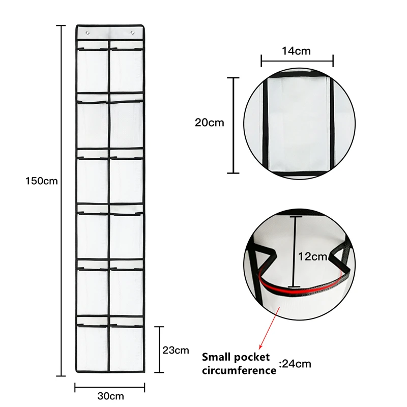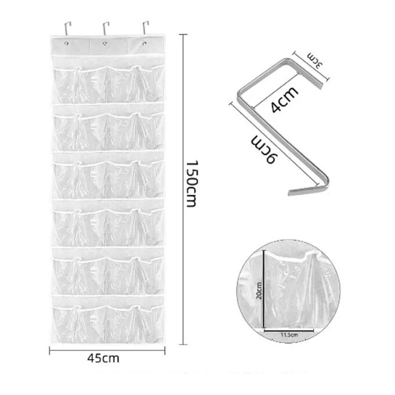 Этот простой в сборке над дверью сумка для обуви имеет 24 нейлоновых сетчатых кармана для хранения и защиты до двенадцати пар обуви. Эта сумка для обуви легко собирается с помощью прилагаемых крючков и удобно висит на дверях стандартного размера. Карманы сделаны из прозрачного пластика, так что вы можете легко определить обувь, которую ищете.