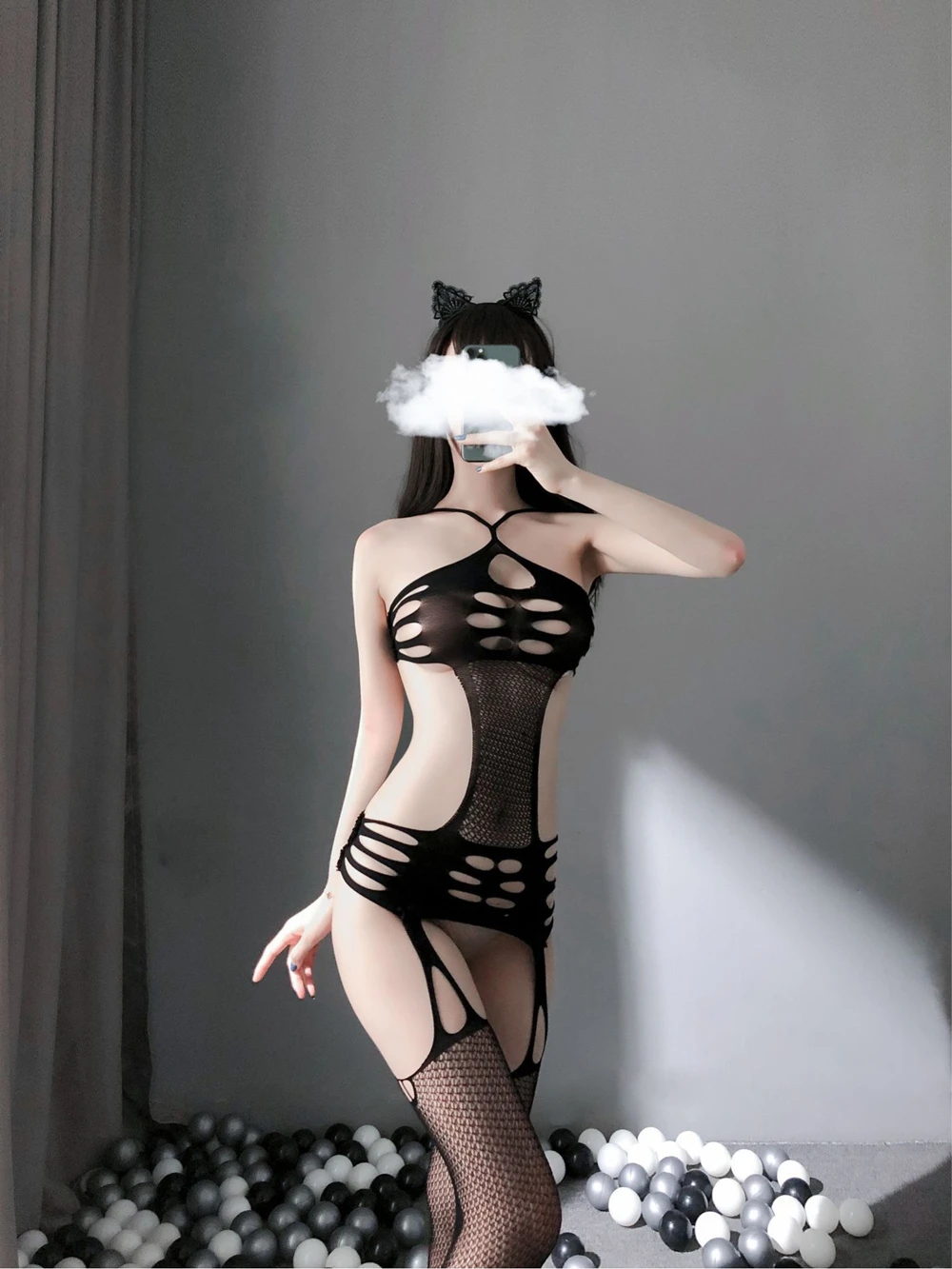 Описание: Тип: Сексуальное белье Материал: полиэстер Размер: свободный размер Подходит для размера XS-XL, подходит для веса дамы (40-70 кг) Цвет: черный Посылка включает в себя: 1 комплект сексуального белья (не включает заколку)