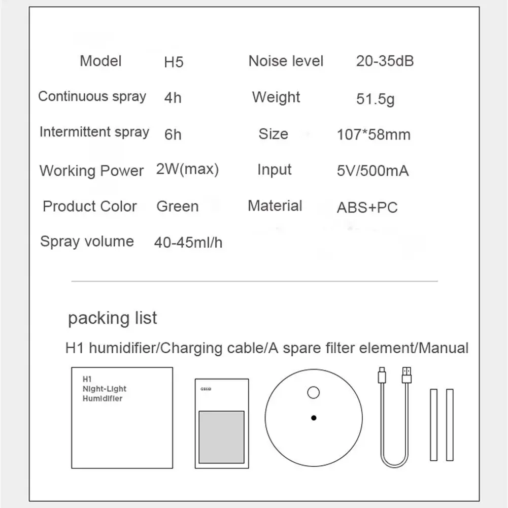 Увлажнитель воздуха * 1,USB кабель * 1, руководство * 1, запасной абсорбирующий хлопок * 1