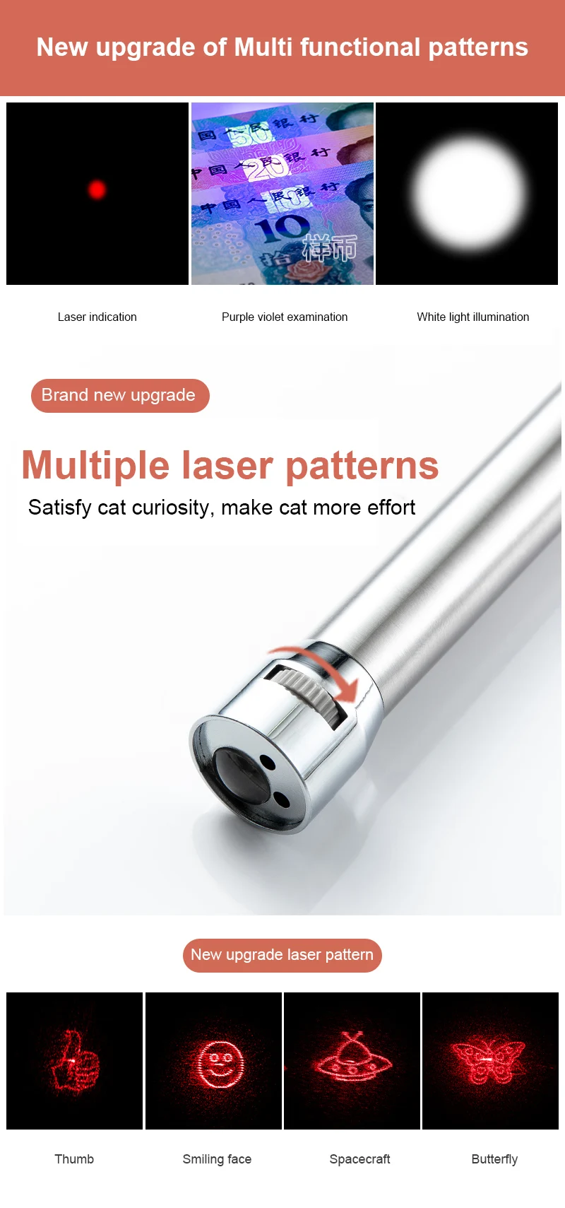 1. Совершенно новое обновление, различные лазерные узоры, удовлетворяют кошачье любопытство, подтягивают котов больше рабочей силы.