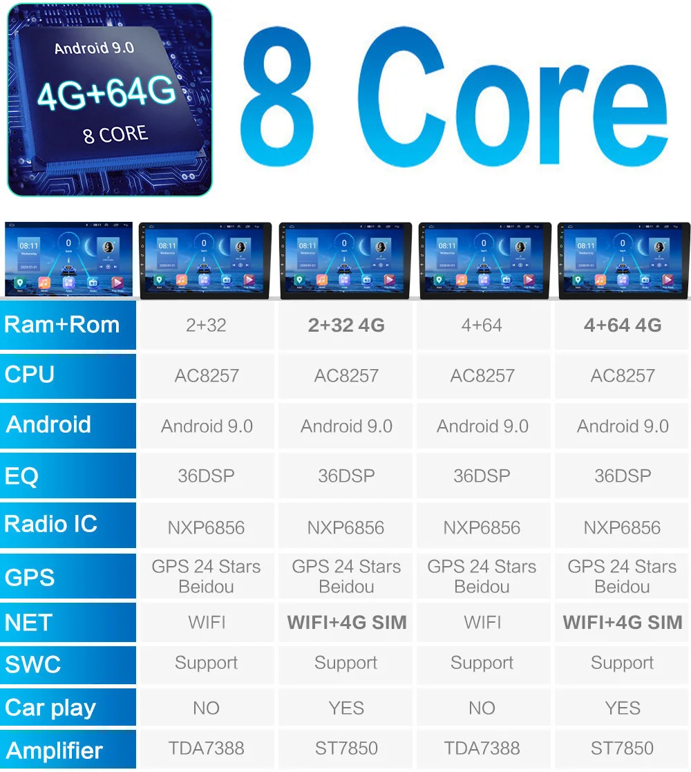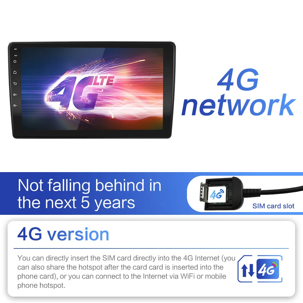 Версия 4G Вы можете подключить sim-карту непосредственно в интернет 4G (вы также можете поделиться точкой доступа после вставки карты в карту телефона), или вы можете подключиться к интернету через Wi-Fi или мобильную точку доступа. Версия WiFi Вы можете подключаться только к Интернету через WiFi или мобильные точки доступа. (Пожалуйста, будьте осторожны, чтобы не покупать ошибки, Не понимаю, можете связаться со службой поддержки клиентов)