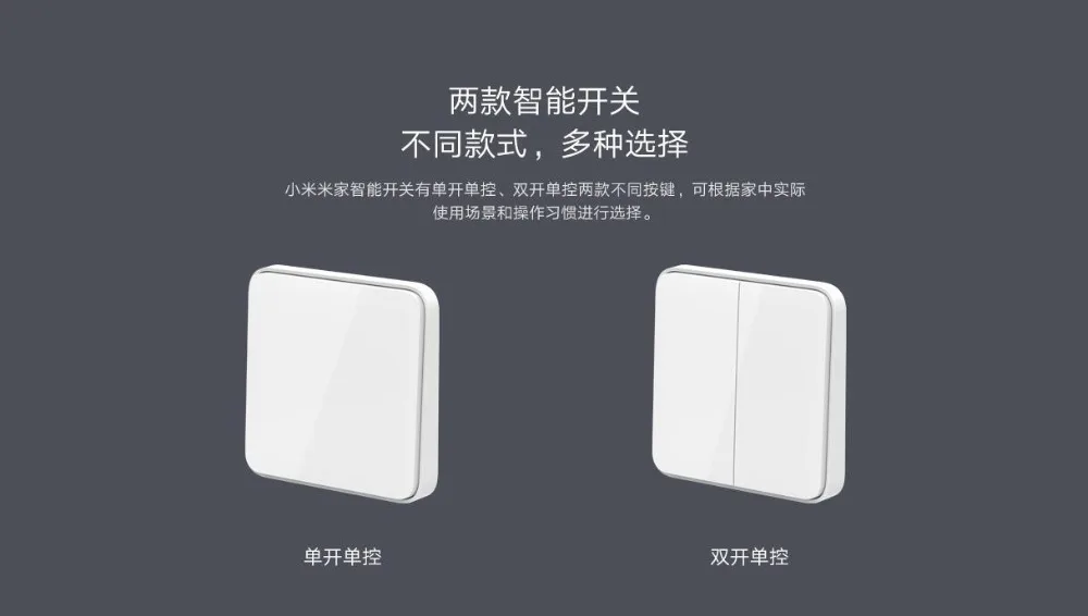 Смарт-переключатель Xiaomi Mijia имеет две разные кнопки, один контроль выставления счетов и двойной контроль выставления счетов, которые могут быть выбраны в соответствии с реальной сценой использования и привычками работы дома.