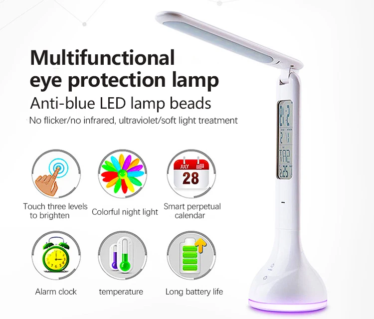 1. Многофункциональная настольная лампа, может использоваться в качестве будильника, может отображать температуру календаря