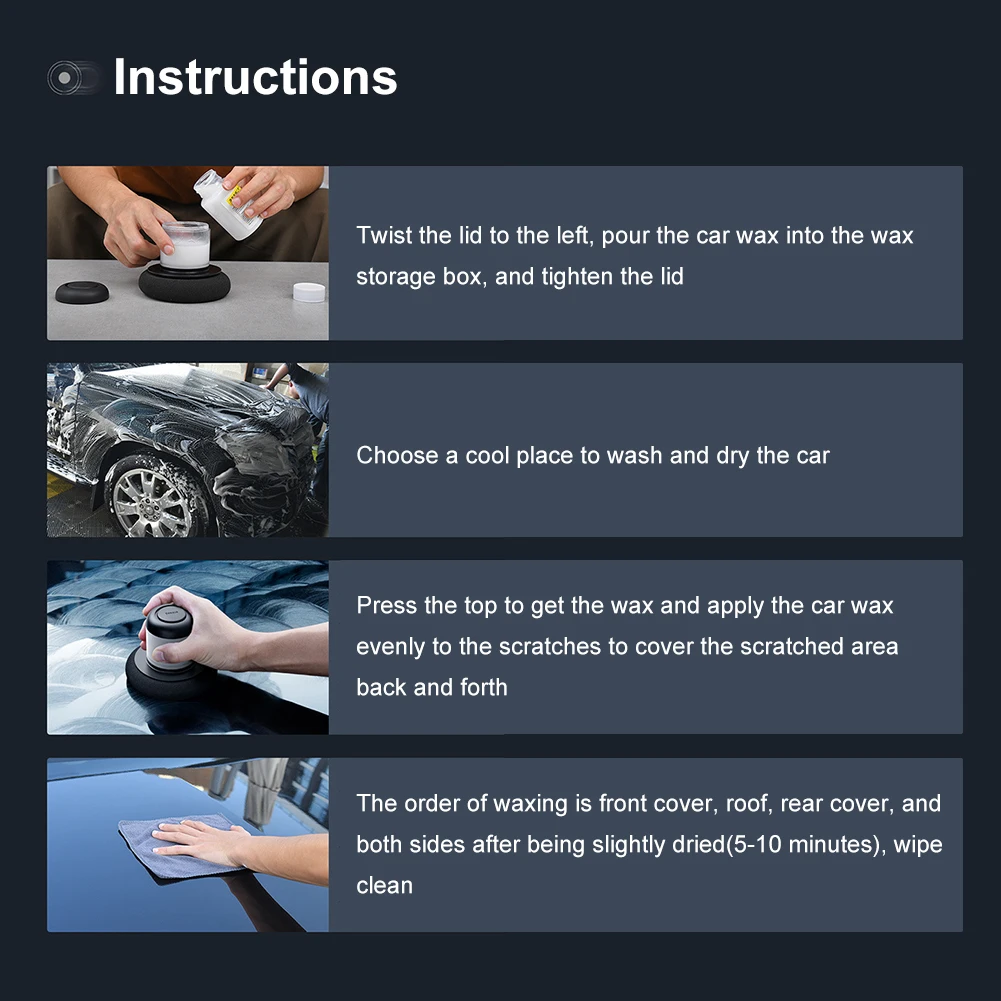 Прижмите верхнюю часть и равномерно нанесите автомобильный воск на царапины и щеткой вперед и назад.