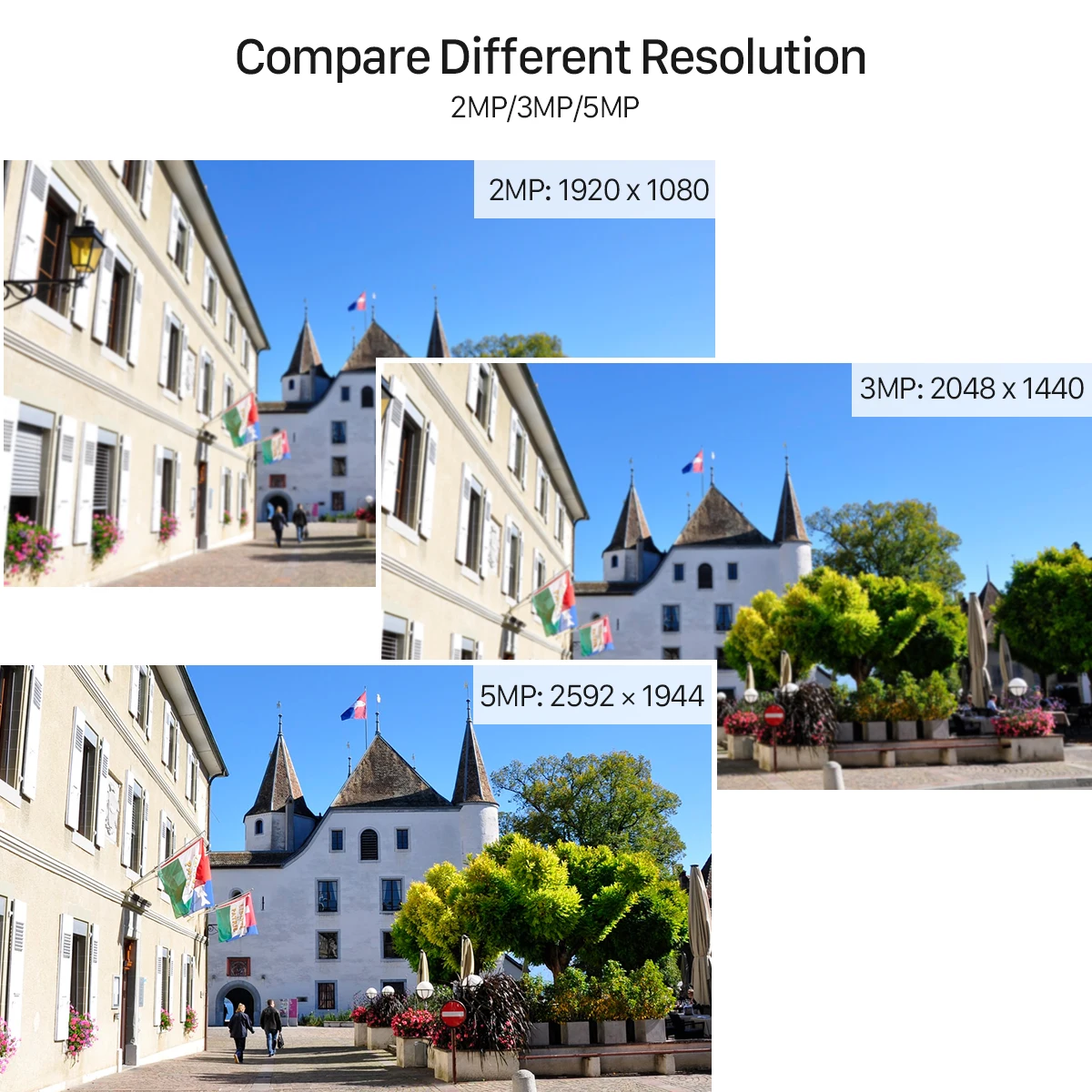 2MP: 1920*1080; 3MP:2048*1440; 5MP:2592*1944;