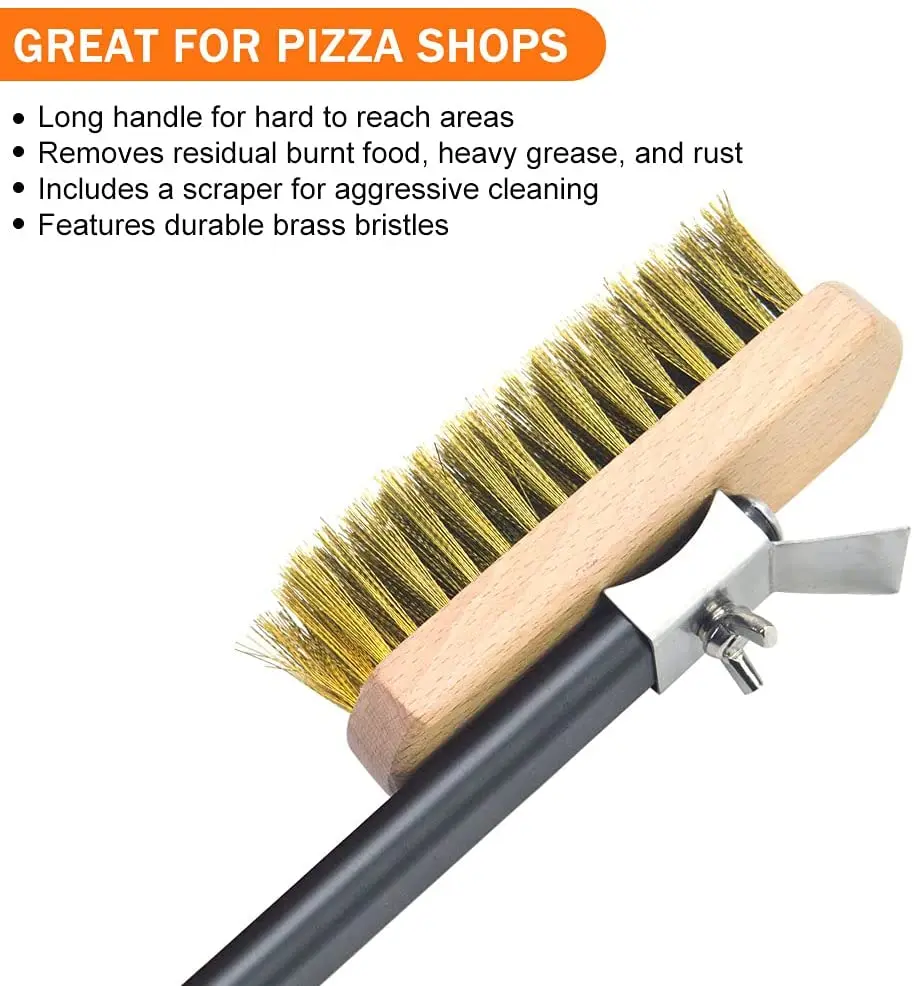 Храните свою печь для пиццы в чистоте и в лучшем виде с помощью этой 40 дюймовой алюминиевой чистящей щетки для пиццы!Длинная ручка идеально подходит для глубокого погружения в печь для пиццы, чтобы удалить остатки сгоревшей пищи, тяжелую смазку и ржавчину.Кроме того, ваш персонал оценит эту длинную щетку, так как они чистят Горячие печи, не слишком близко к груди.