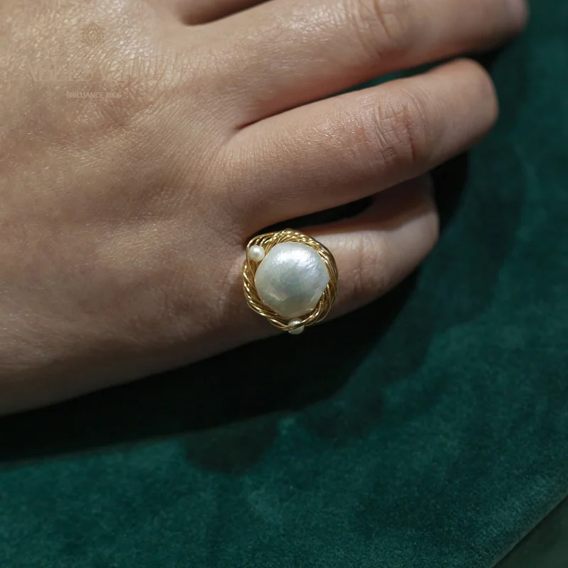 Изысканные детали и исключительная работа создали по-настоящему уникальный кусок натурального жемчуга в стиле барокко, изящное кольцо на палец для женщин, которые говорят с уверенностью, страстью и гордостью.