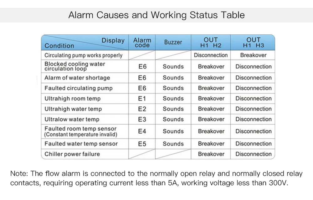 4. Несколько функций сигнализации: защита от задержки компрессора, защита от перегрузки по току компрессора, сигнализация потока воды и сигнализация при высоких/низких температурах;