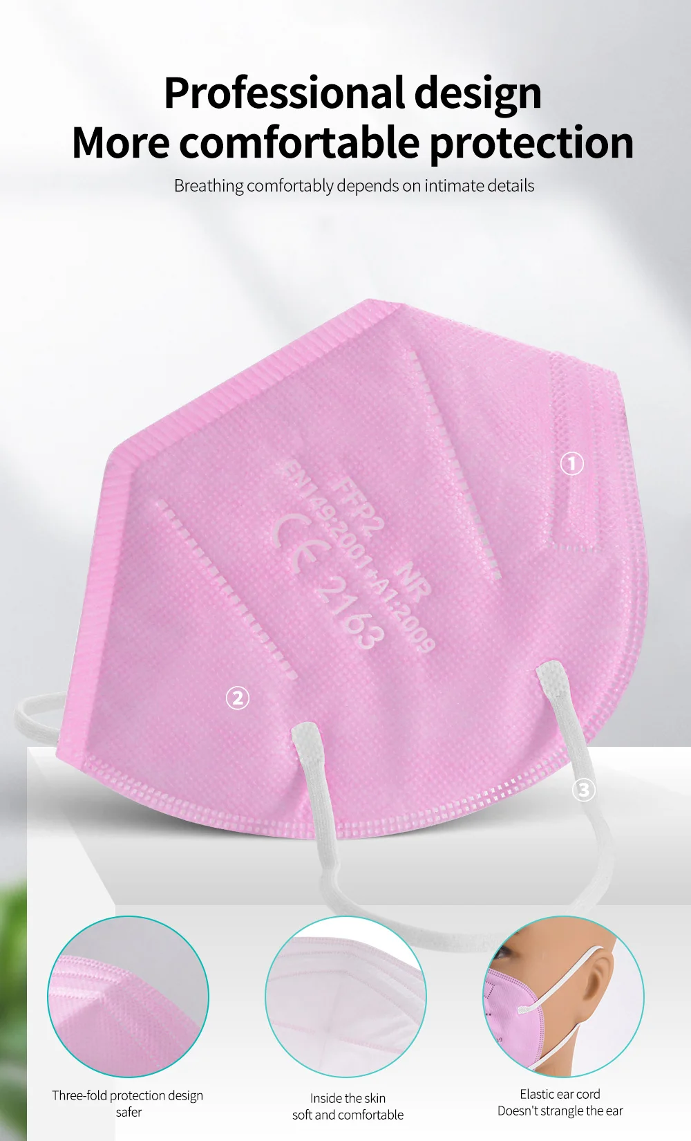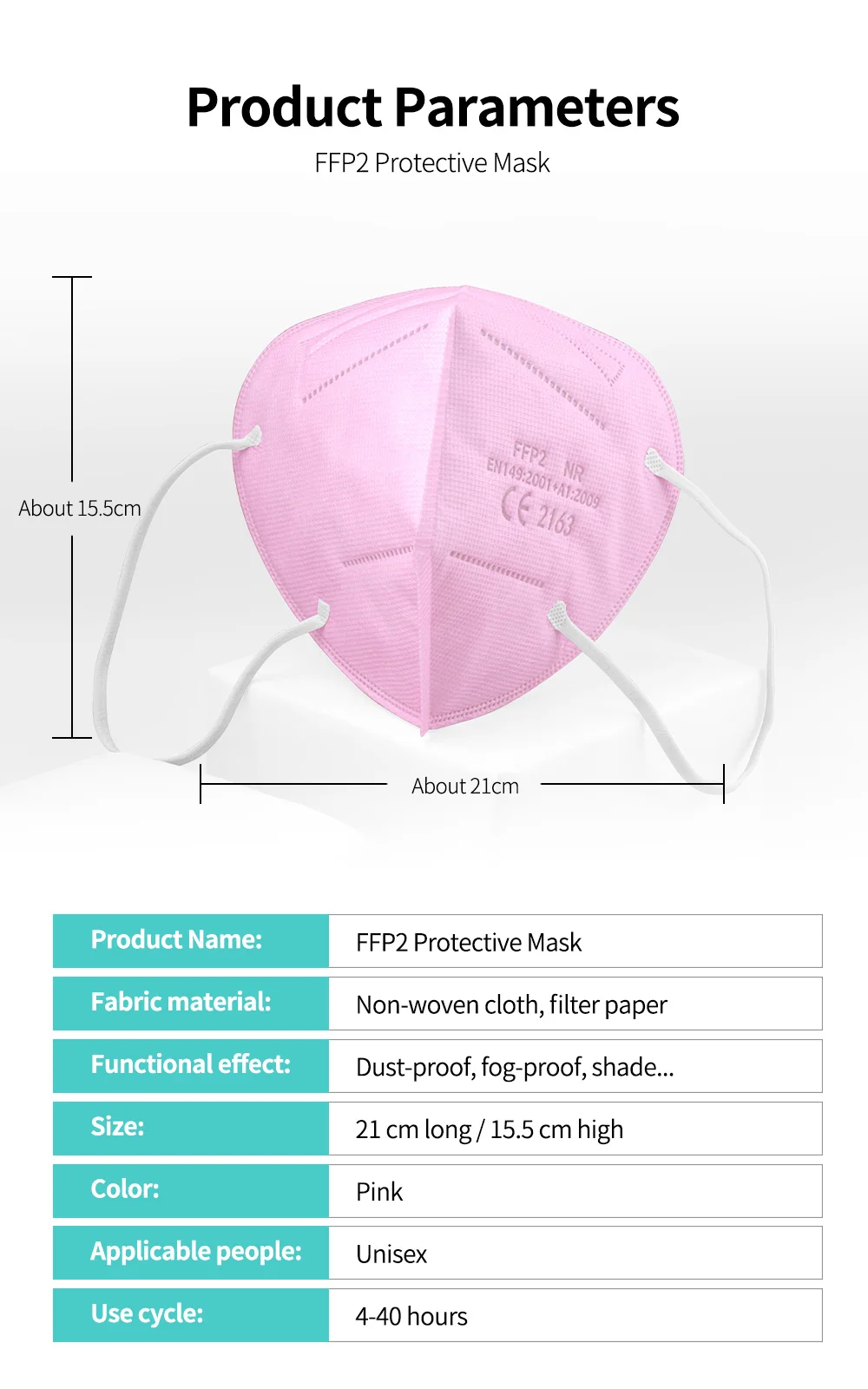 Примечание: маска напечатана"FFP2 NR EN 149:2001 + A1:2009 CE 2163"ДляВзрослый