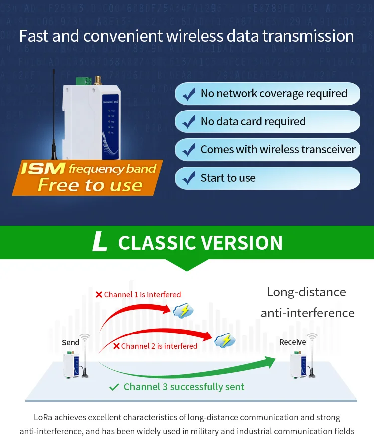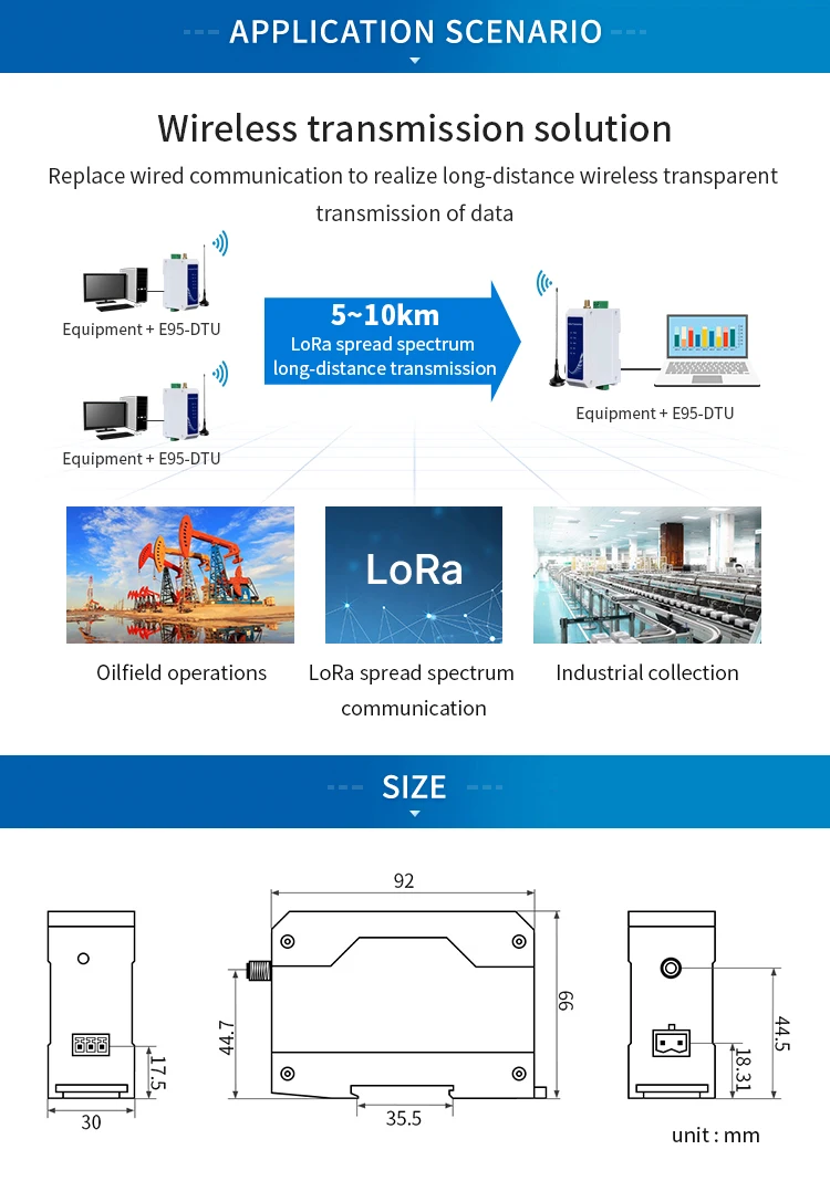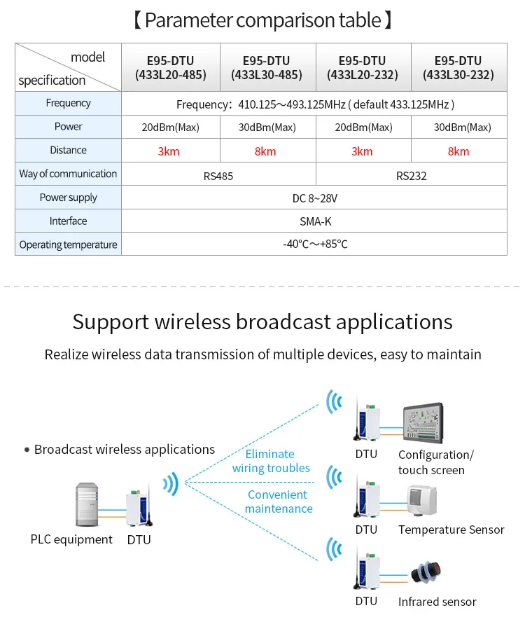 E95-DTU(433L20-485)-V8 20dBm 433MHz RS485 беспроводной модуль din-рейка LoRa модем Беспроводная станция передачи данных междугородние