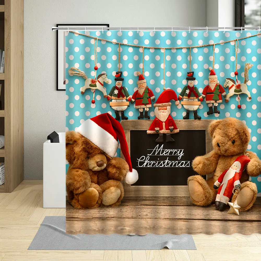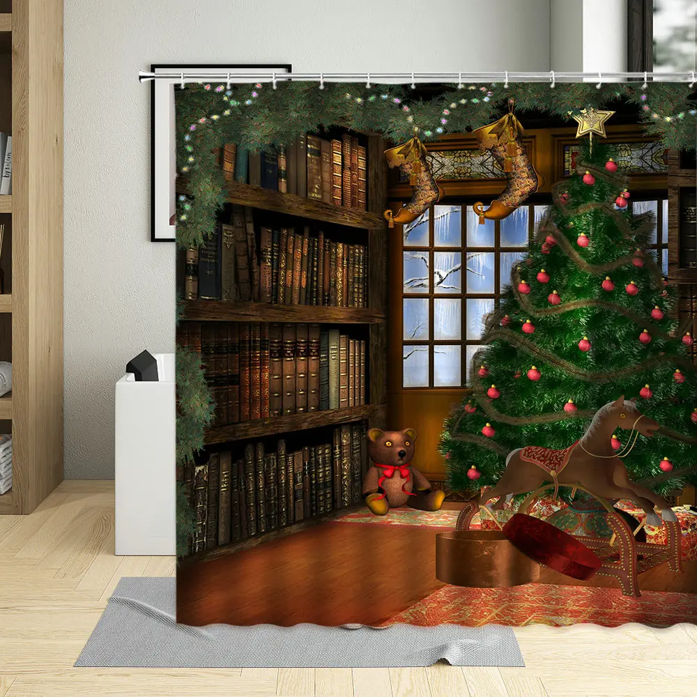 Счастливого Рождества, снежный дом, украшение на стену, занавески для ванной комнаты, новый год, ретро экран для комнаты, занавеска для душа, водонепроницаемая, с крючками