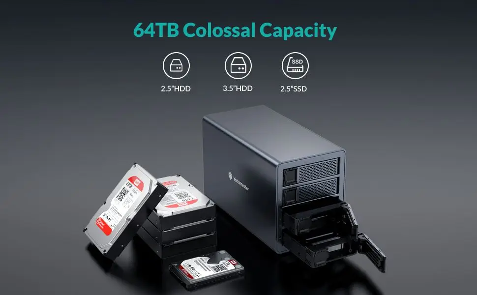 Этот Корпус жесткого диска с 4 отсеками поддерживает 4 жестких диска s с максимальной емкостью 64 ТБ и 16 ТБ для одного диска. Используйте порты dual USB-C Gen2 (10 Гбит/с) для подключения к сети daisy два дополнительных периферийных устройства (за исключением основного устройства), это означает, что вся емкость может достигать в общей сложности емкости хранения в корпоративном классе monster 192 ТБ.