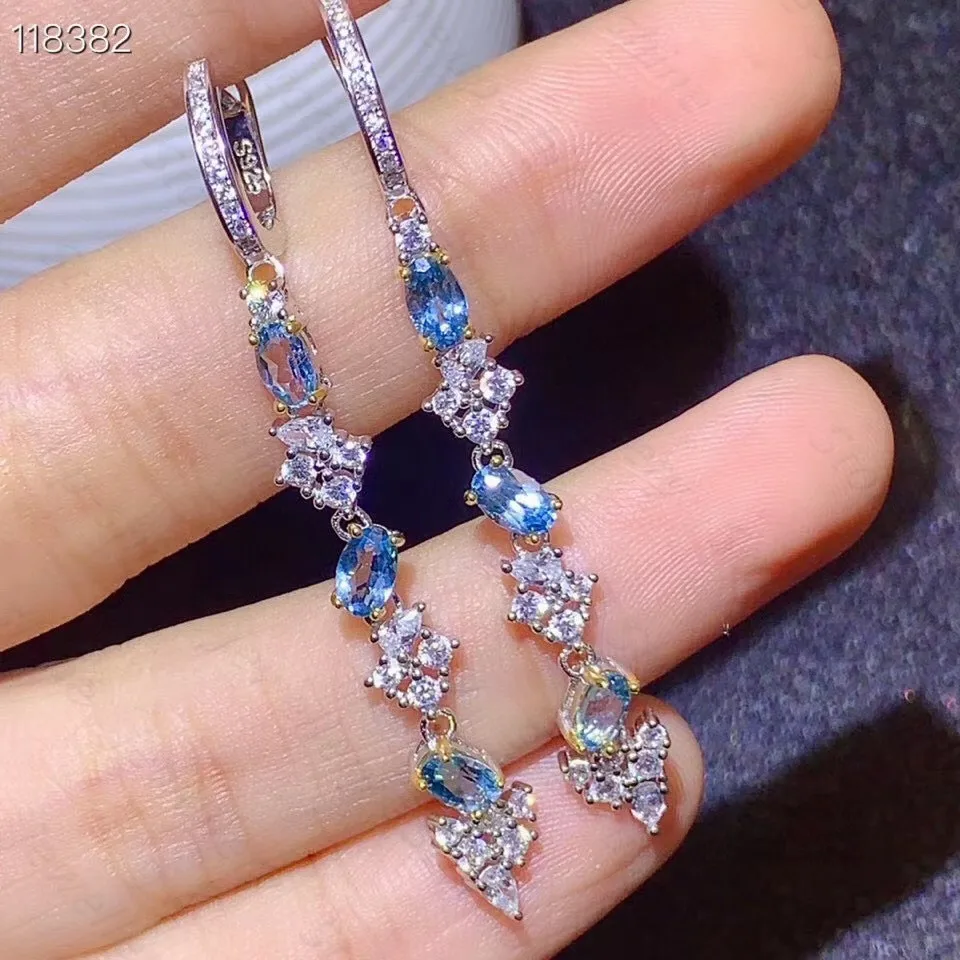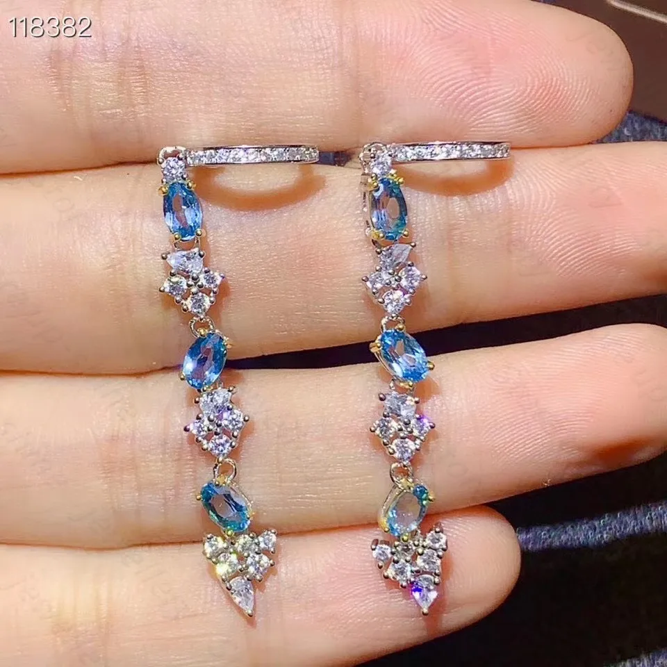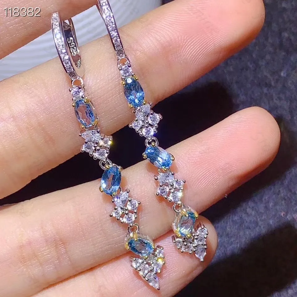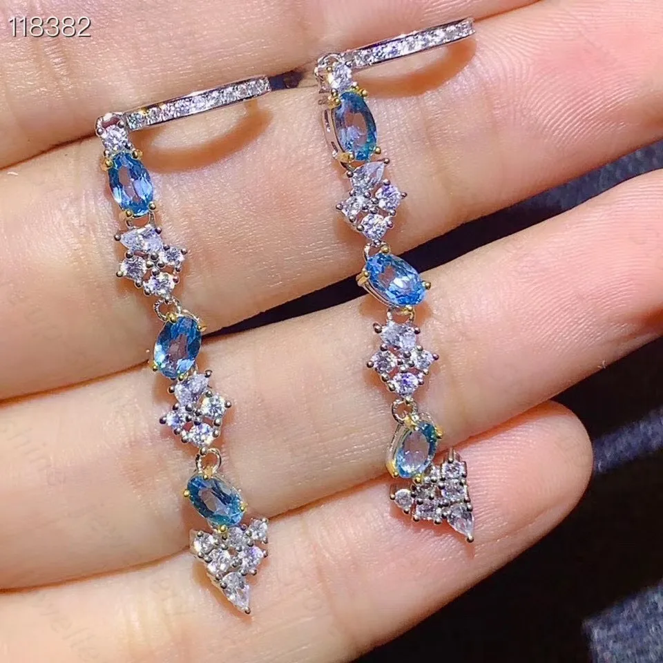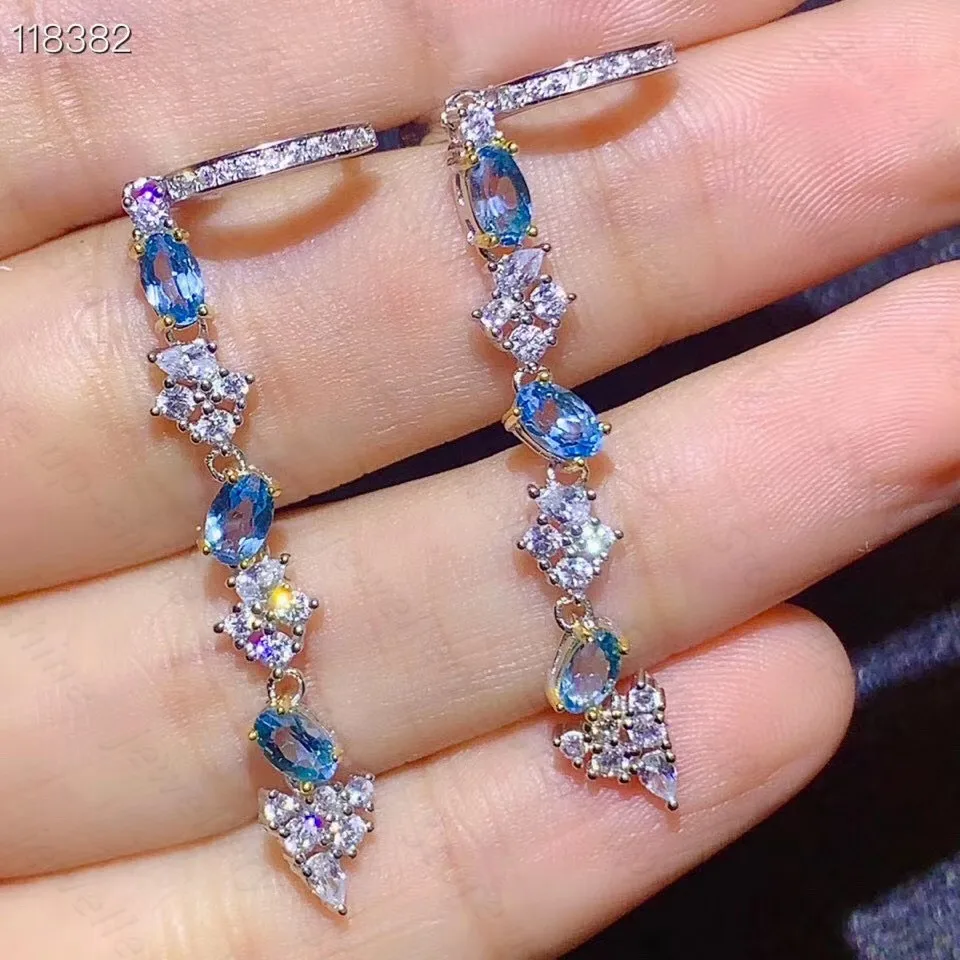 New natural blue topaz earrings, 925 silver women's earrings, luxurious and elegant design highlights feminine charm
