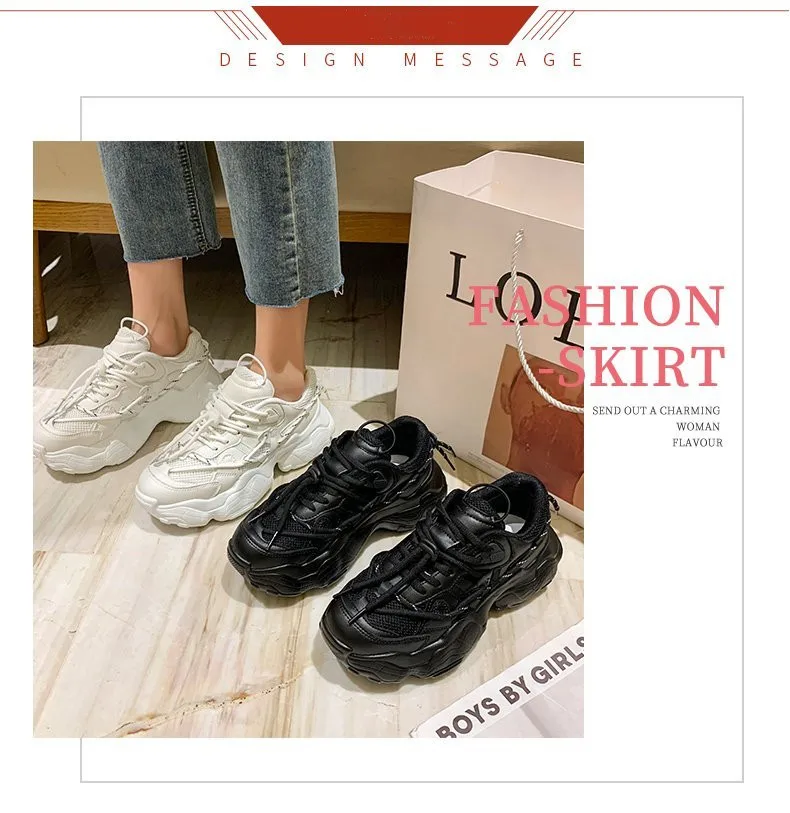 Женские модные белые кроссовки 2021, Весенняя повседневная обувь на массивной платформе, Брендовая обувь для пожилых пап, женская черная Вулканизированная обувь, Белая обувь 5 см