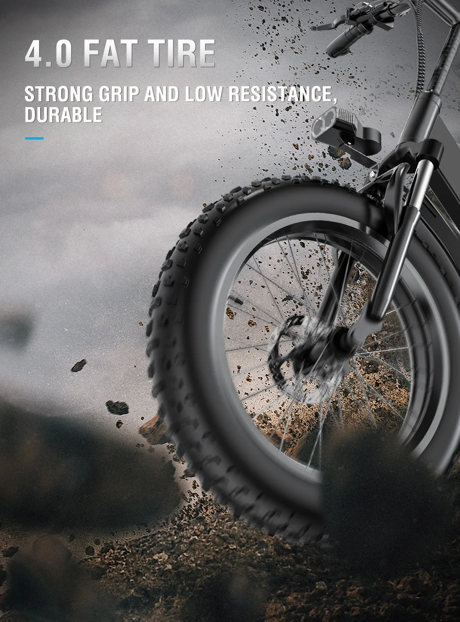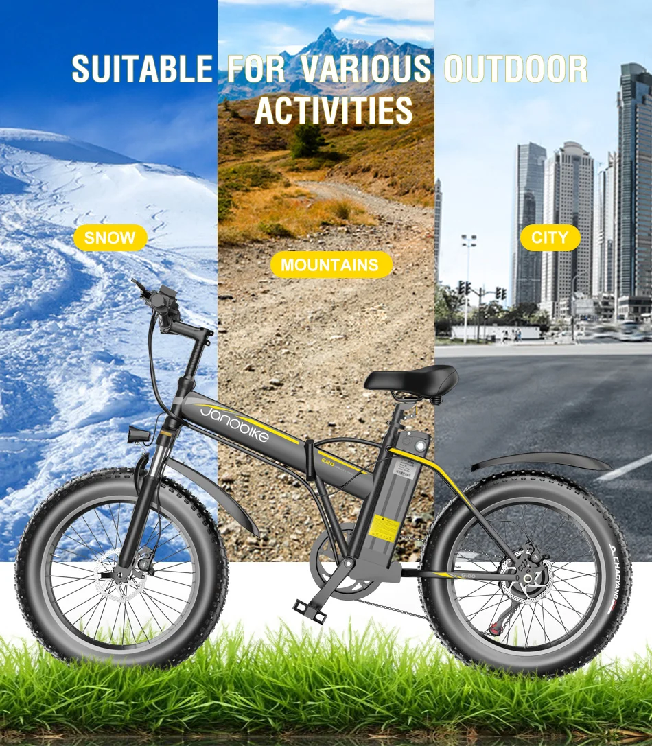 Электрический велосипед Janobike E20 48 в 1000 Вт 12.8AH Panasonic со сложенной батареей 4,0 толстых шин Электрический велосипед Горный Снежный велосипед