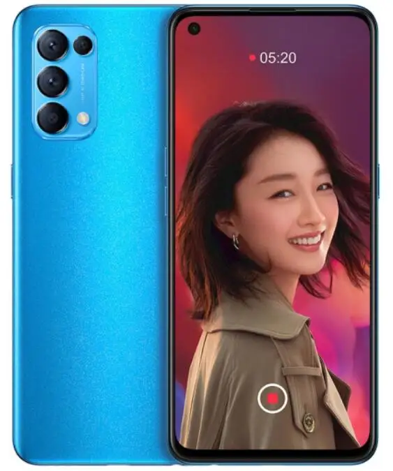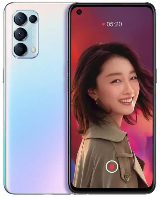 Основные характеристикиOPPO Reno 5-версия CN с оригинальным официальным ПЗУПроцессор: Snapdragon 765G + ВосьмиядерныйЭкран: 6,43 дюйма OLED 2400*1080PОЗУ + ПЗУ: 8 ГБ + 128 Гб/12 Гб + 256 ГБКамера:Сзади: 64 мп + 8 Мп + 2 Мп + 2 МП спереди: 32 МПСистема: ColorOS 11,1 на базе Android 11Аккумулятор: 4300 мАч (тип)Быстрая зарядка: 65 Вт SupperVOOC2.0Bluetooth: 5,1NFC: