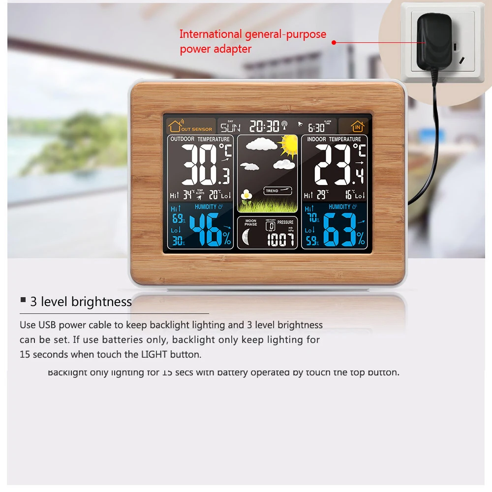 Прогноз погоды:Температура и влажность в помещении/на улице показывает с четким увеличением цифровой дисплей. Прогноз погоды рассчитывается на основе давления воздуха с наружным беспроводным дистанционным датчиком (радиус действия до 200 футов).