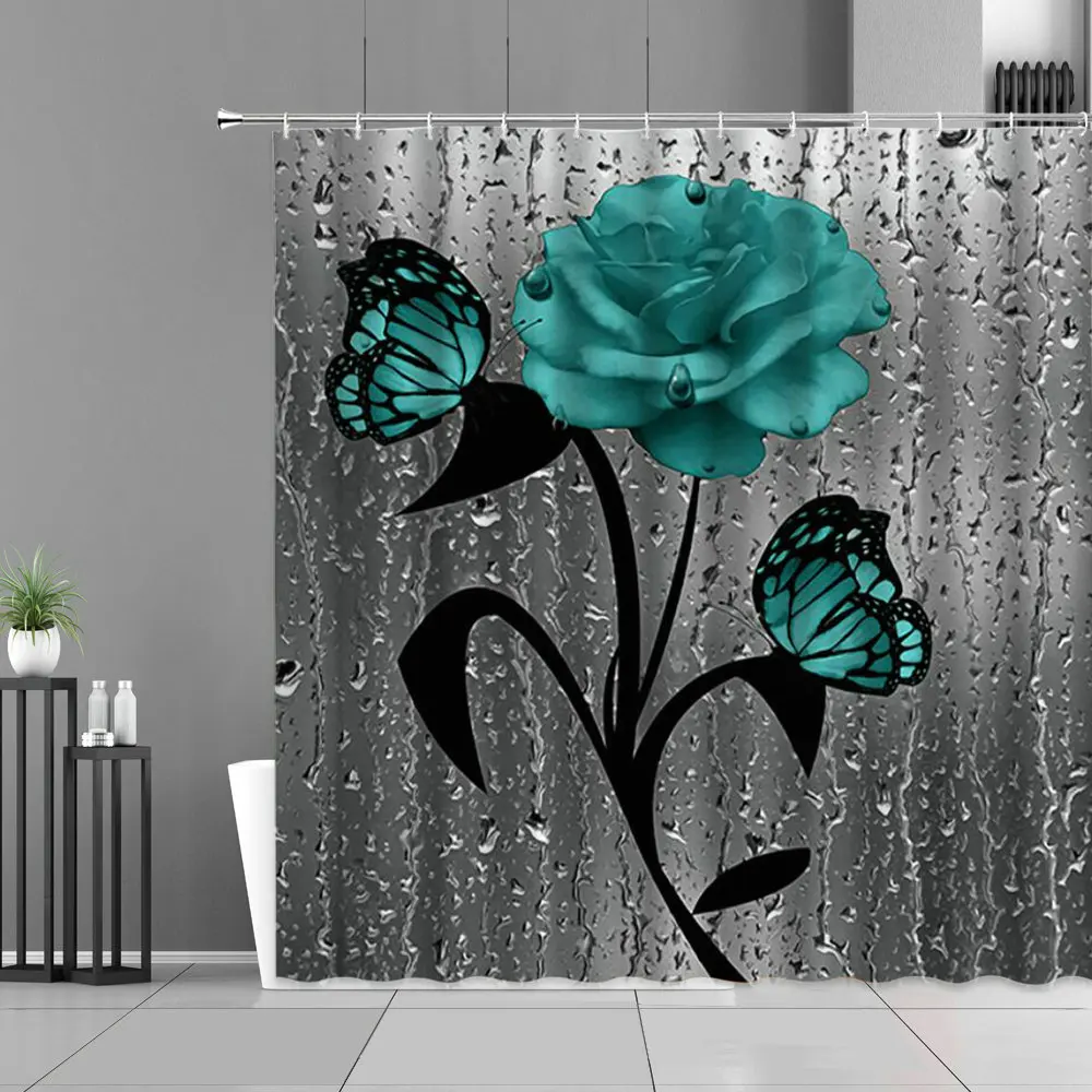 Красная Роза 3D бабочка занавеска для душа с цветными розами День Святого Валентина Тема для ванной занавеска для влюбленных Ванная комната Декор экран водонепроницаемый