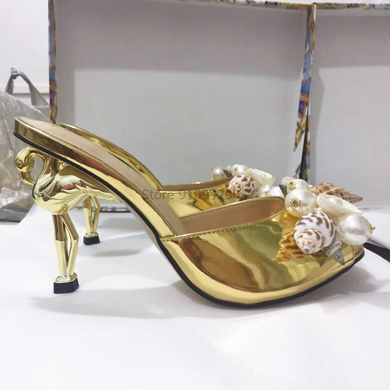 Золотые сандалии; Женские летние туфли без застежек из лакированной кожи на высоком металлическом каблуке