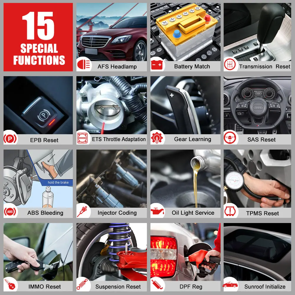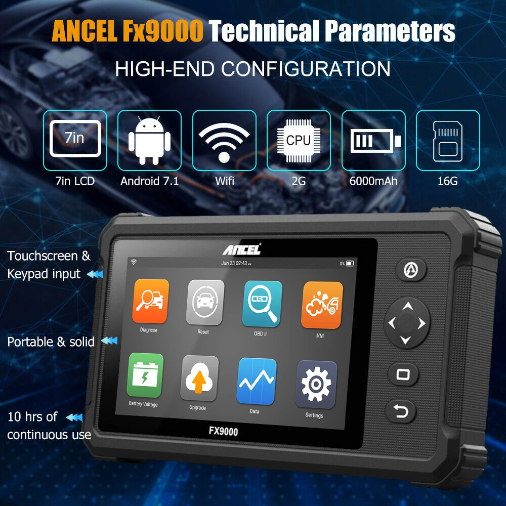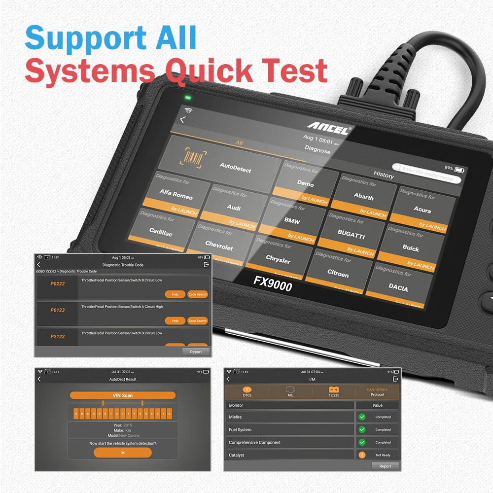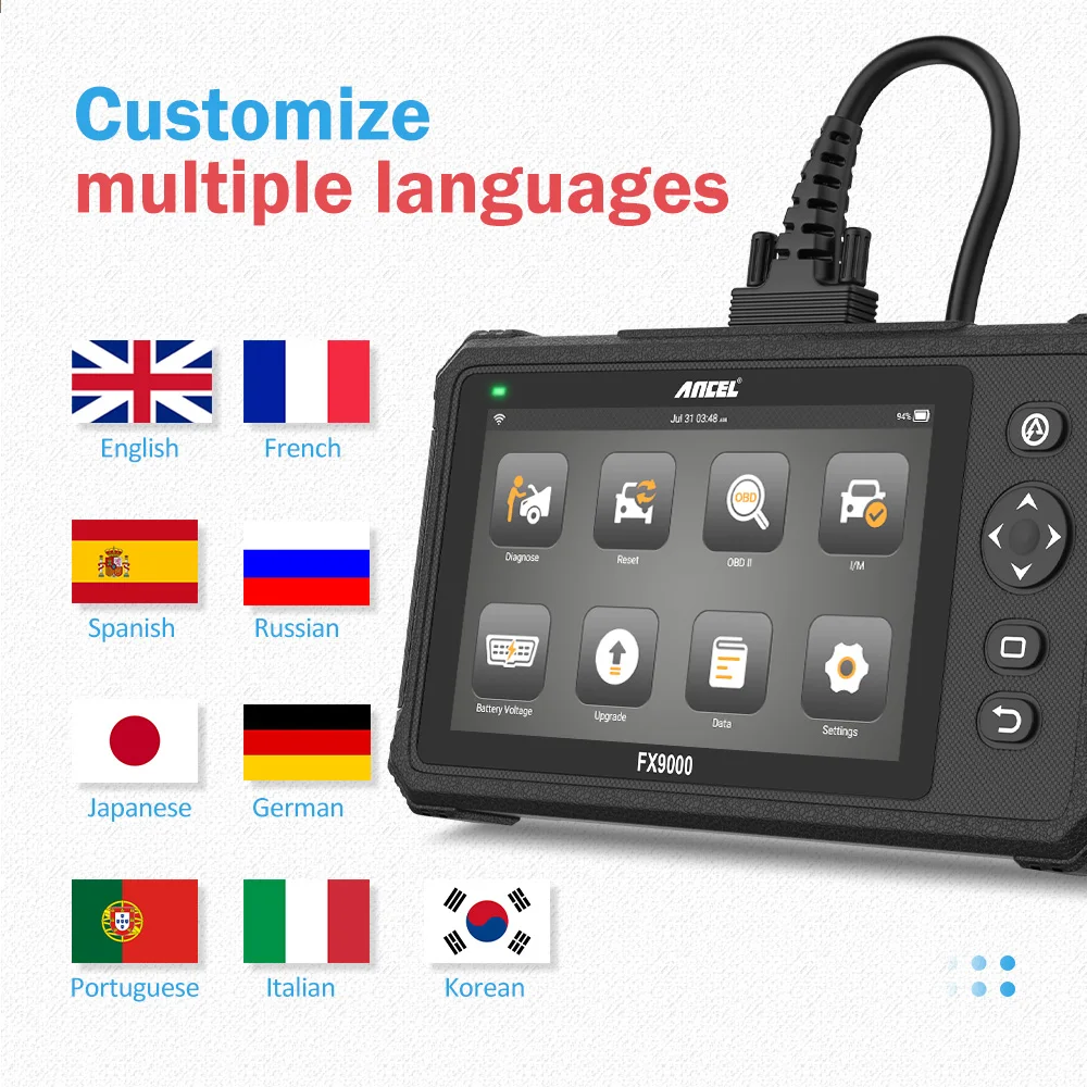 Ancel FX9000 поддерживает все диагностические системы, 15 функций сброса и все функции OBD2