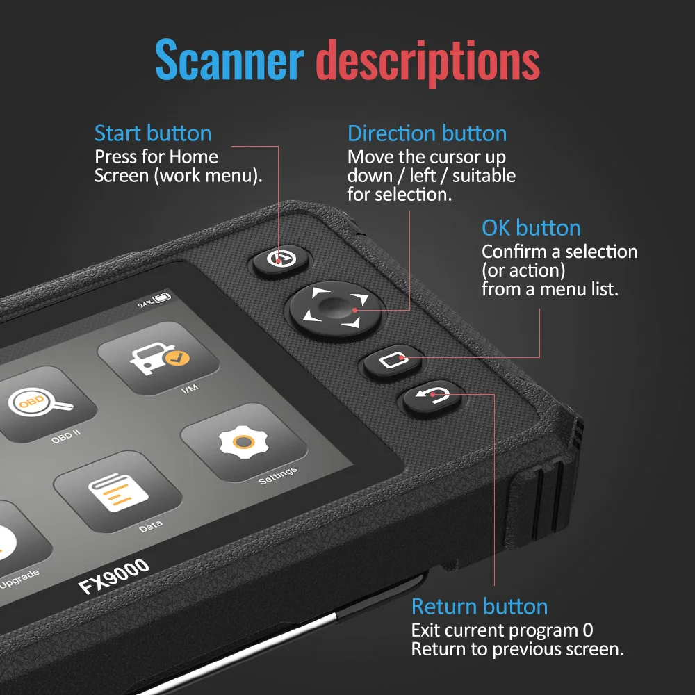 Ancel FX9000 OBD2 автомобильный сканер профессиональная вся система подушки безопасности ABS TPMS инжектор масла IMMO сброс OBD 2 Автомобильный диагностический инструмент