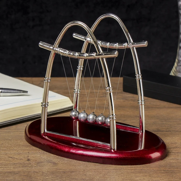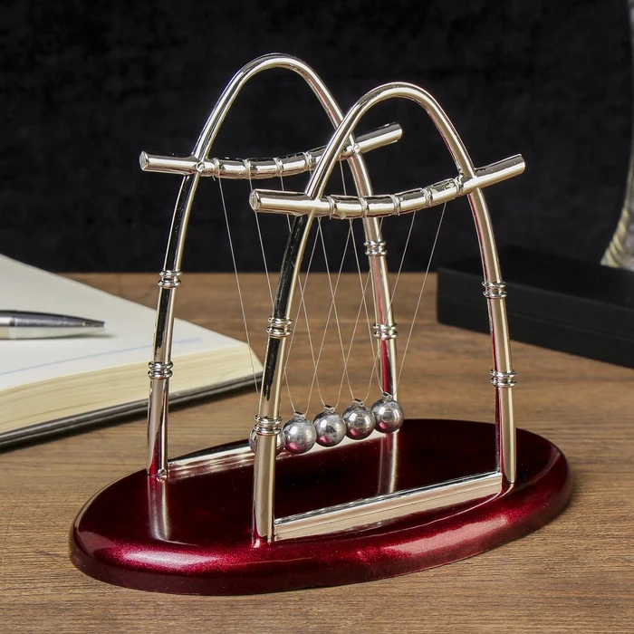 Маятник Ньютона на овальной подставке, коричневый, малый