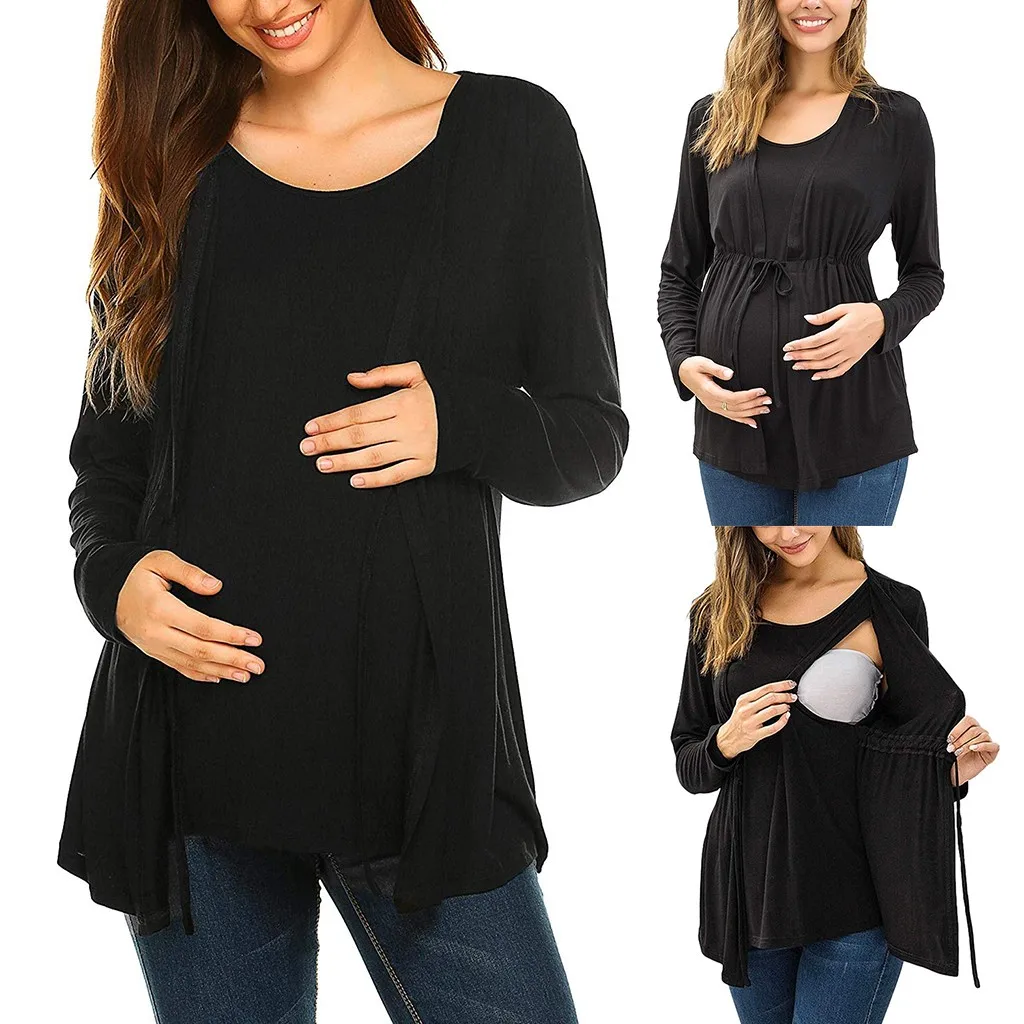 Женская Двухслойная футболка с длинным рукавом для кормления грудью