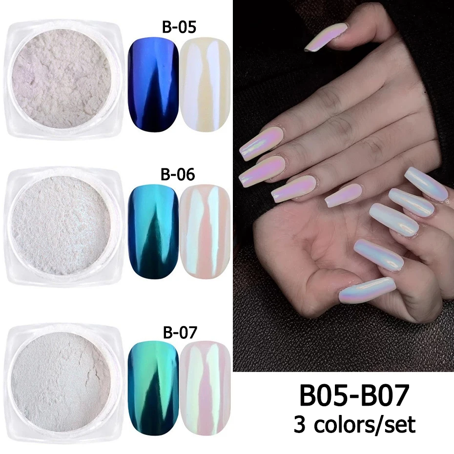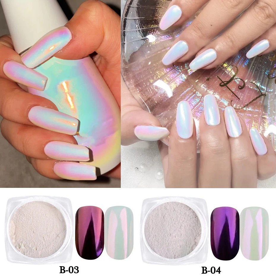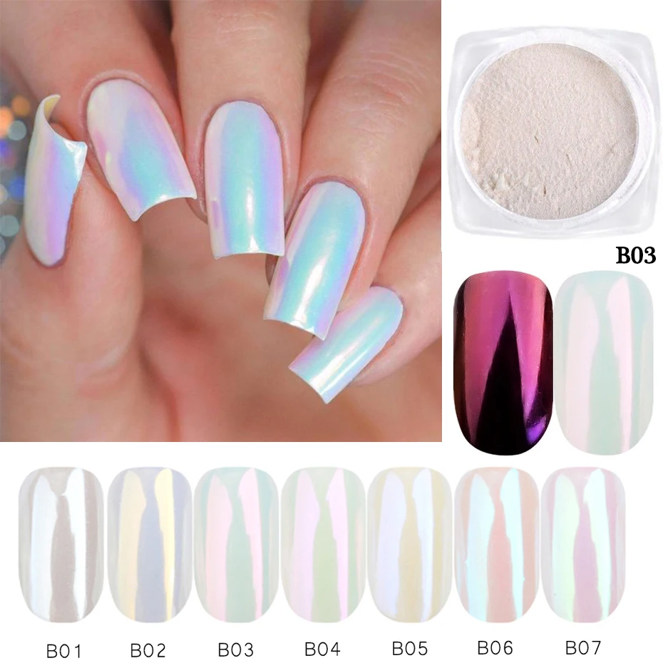 7/3 коробки Аврора жемчуг для ногтей, порошковый набор русалки неоновые тигантский носорог цвет блеск зеркало хром рисунки на ногтях, украшения