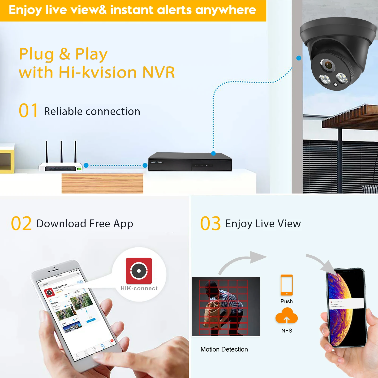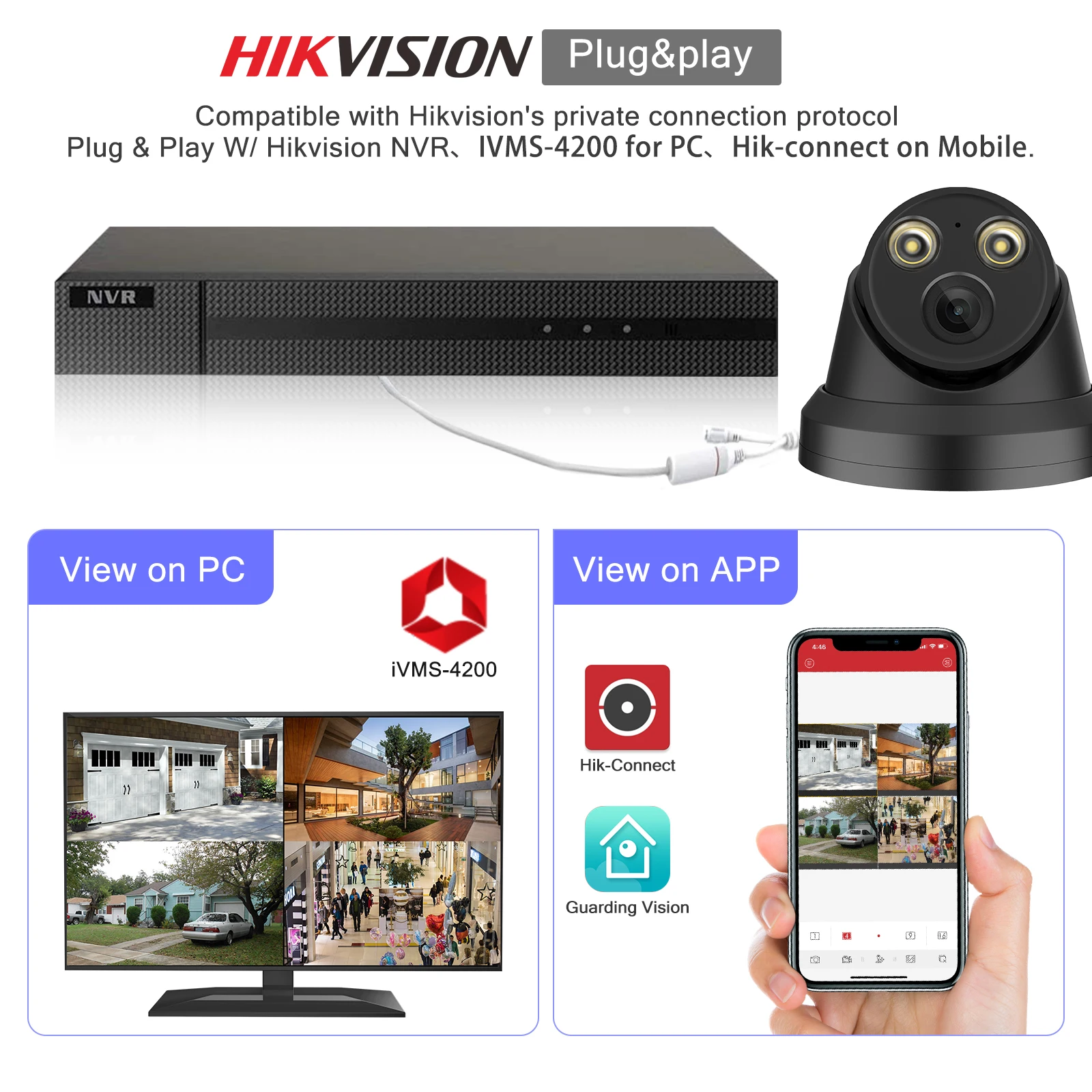 Hikvision совместимая цветная Vu 5MP купольная POE ip-камера 8MP домашняя камера видеонаблюдения 1080P 30m ONVIF H.265 P2P Plug & play IPCHikvision Protocl Hikvision NVR
