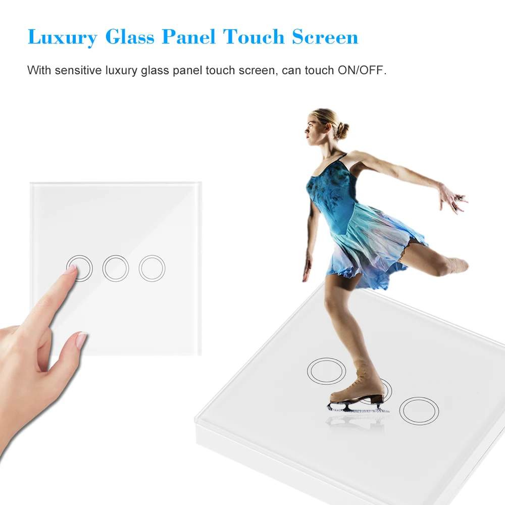 * С чувствительной роскошной стеклянной панелью сенсорного экрана, может касаться ВКЛ/ВЫКЛ. Обновите свой дом до элегантного умного дома, Управляйте в любом месте и в любое время!