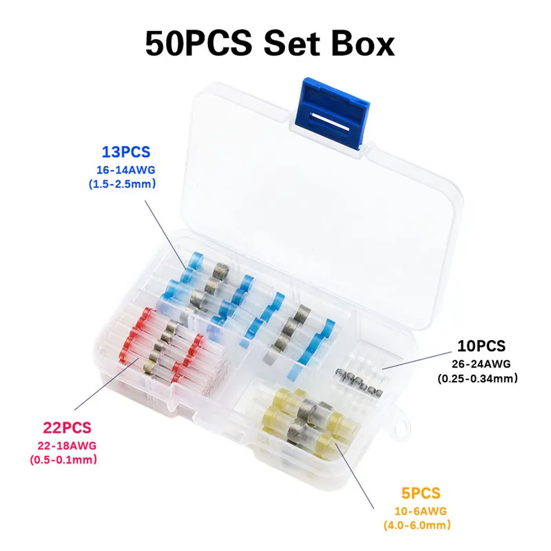 ● 1 × 250 шт. Термоусадка Паяные соединители (четыре размера/цвета)