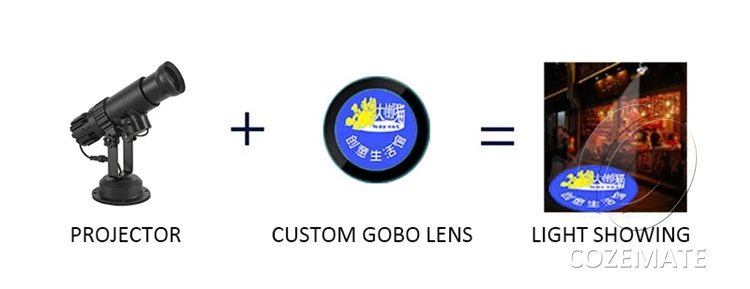 1) проектор является только машиной, не содержит gobo объектив. Объектив Gobo нужен только для заказа.
