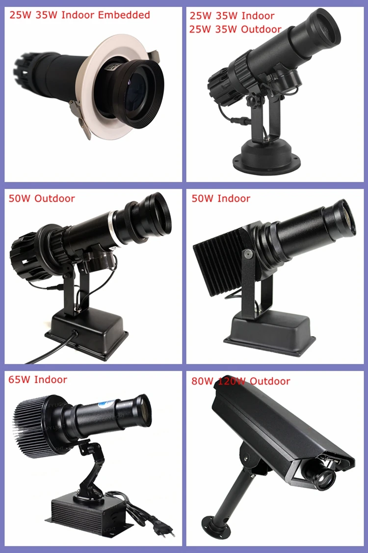 О: мощность проектора gobo зависит в основном от расстояния и окружающей среды, которую вы планируете использовать, вы можете обратиться к картинке ниже. (Весь светодиодный проектор не рекомендуется использовать в дневное время, особенно под солнцем)