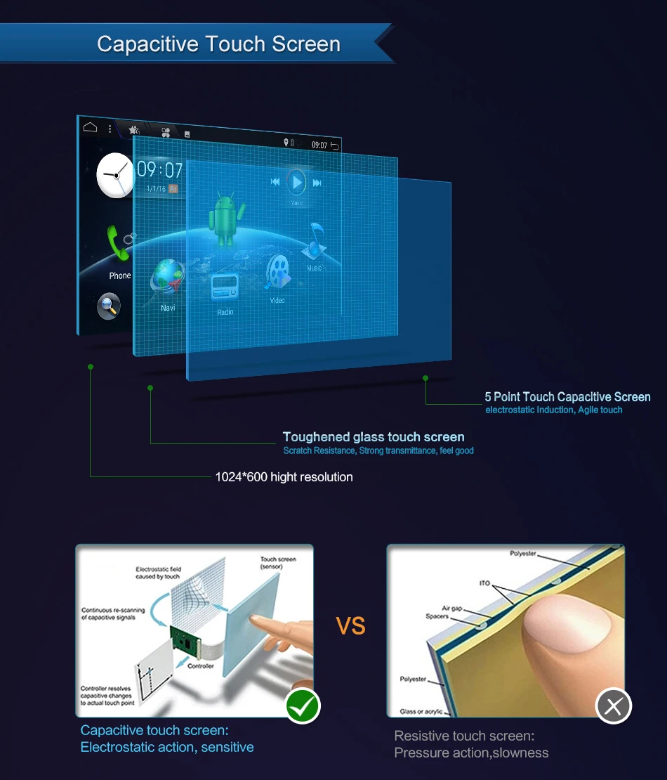 2:HD емкостный сенсорный экран: 1024*600