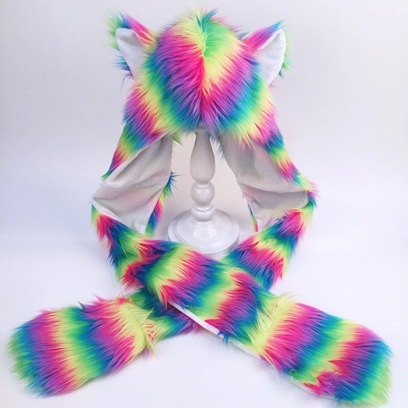 Милый дизайн с ушками животных волка, функциональный шарф 3 в 1, шапка и варежки, 2 цвета на выбор.