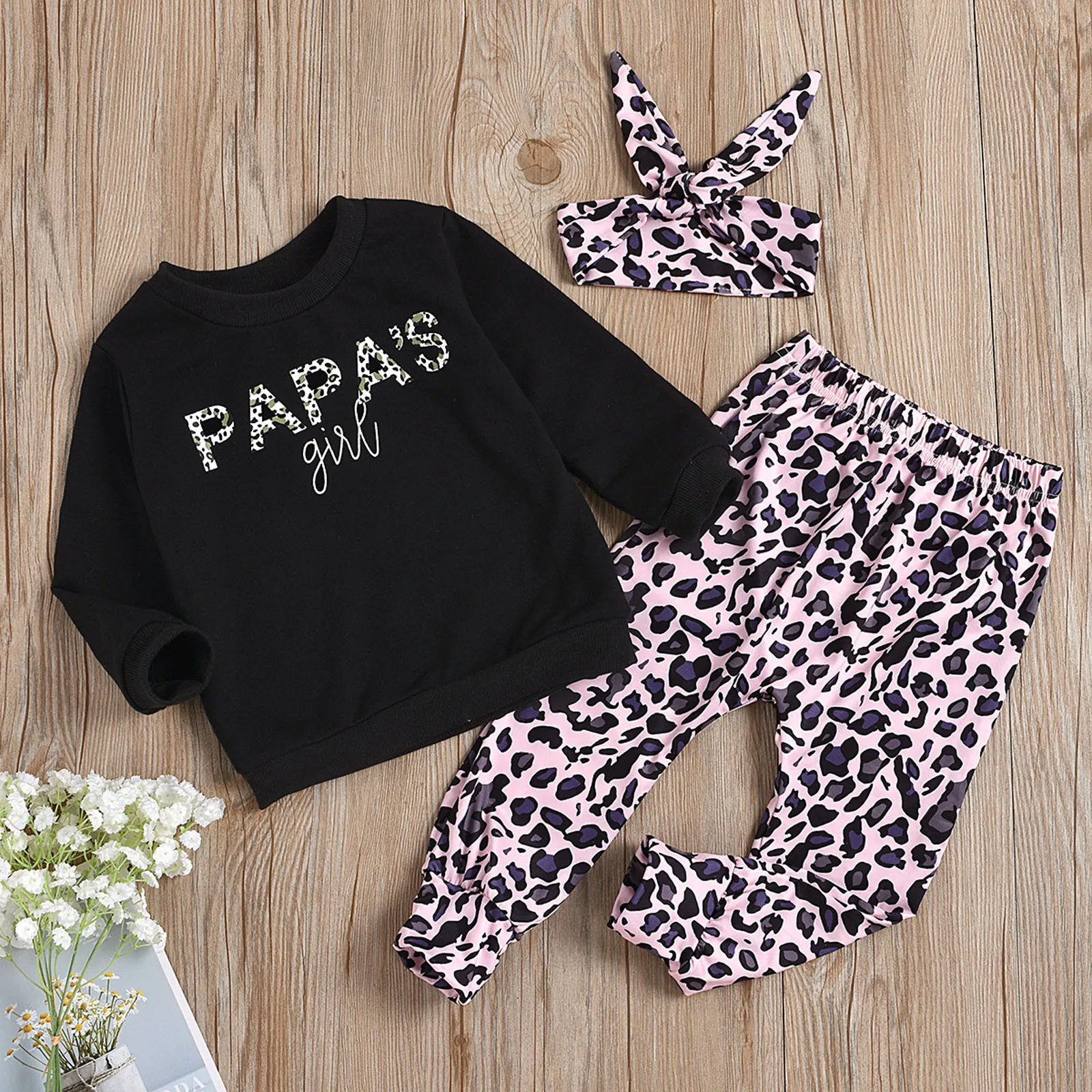 Топы с длинными рукавами и буквенным принтом для новорожденных мальчиков и девочек, штаны, повязка на голову, наряды