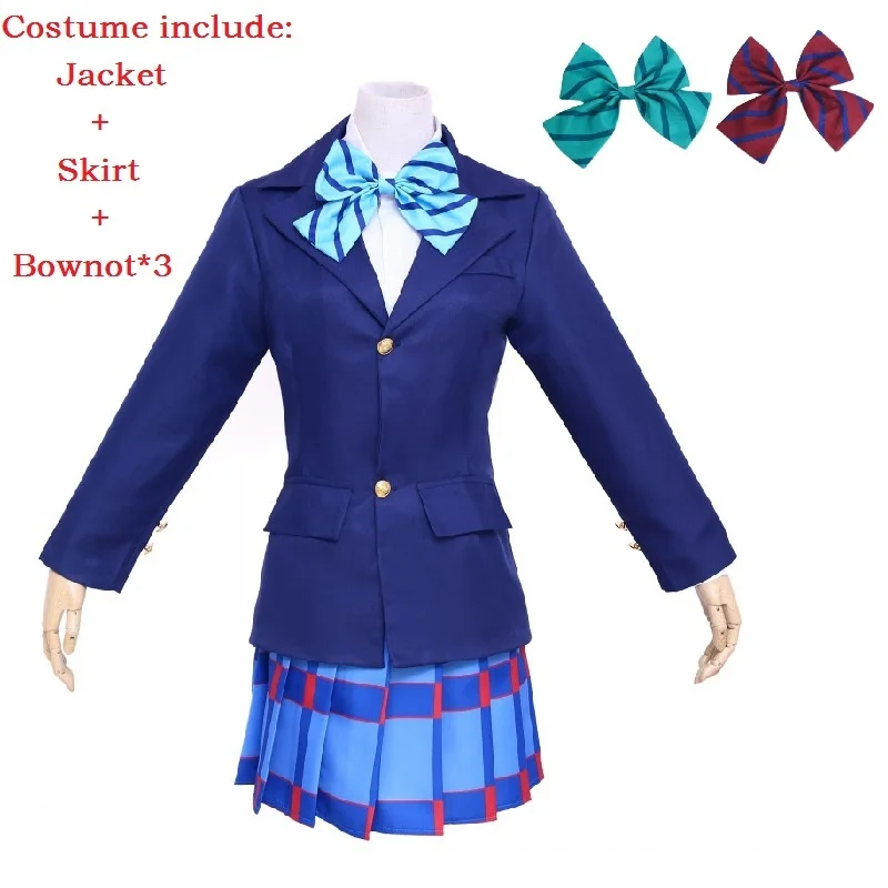 Полный комплект включает: 1 куртка + 1 юбка + 3 галстука (1 красный + 1 зеленый + 1 синий)