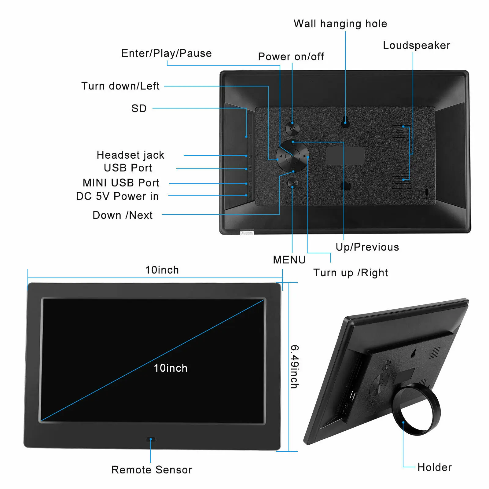 10-дюймовая цифровая фоторамка электронное изображение, видеоплеер, HD-дисплей, альбом для фильмов