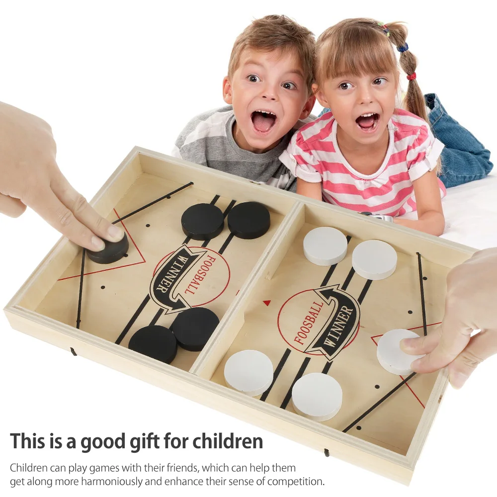 3. Идеальный дизайн: Гладкая деревянная настольная доска легко переносится во время путешествий, что является идеальным выбором для небольшого пространства, не требует батарей. Просто выньте доску и играйте с семьей и друзьями. После игры, пока стол закрыт, он станет коробкой для всех хоккея на льду.