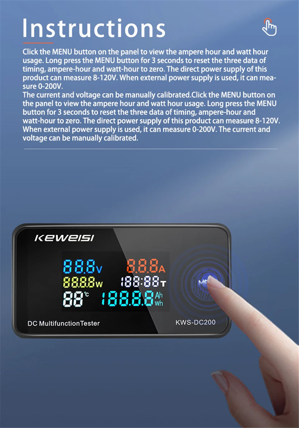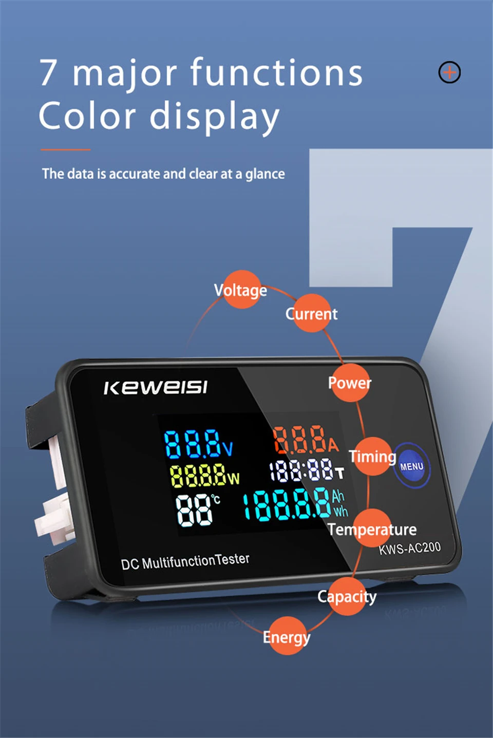 2. Семь функций: он может измерять напряжение, ток, мощность, время, температуру, емкость, электричество.