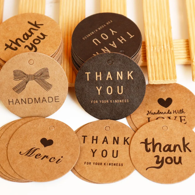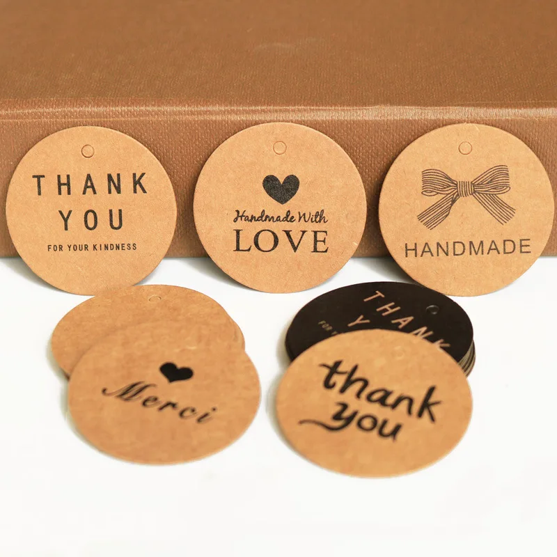 Материал: крафт-бумага Размер: диаметр 4 см Форма: круглая Цвет: как на картинке Дизайн: Спасибо/ручная работа Количество: 100 шт./лот Примечание: Допускается погрешность ± 1 мм вручную.