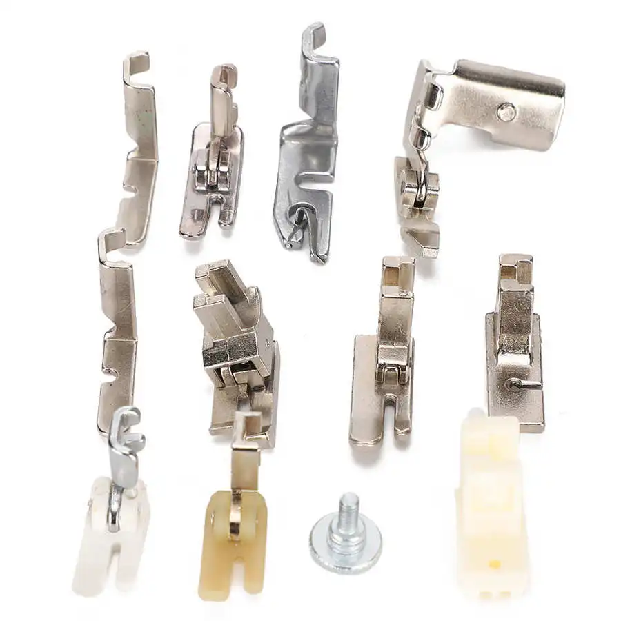1 x Свернутый Край стопы 1 x Нескользящая стопа 1 x трикотажная Лапка 1 ступня высокого и низкого давления 1 x невидимая молния 1 x ножка на молнии 1 x направляющая нога 1 x кординг ноги 1 x пинтук ноги 1 х винт 2 х винтажные ноги на молнии
