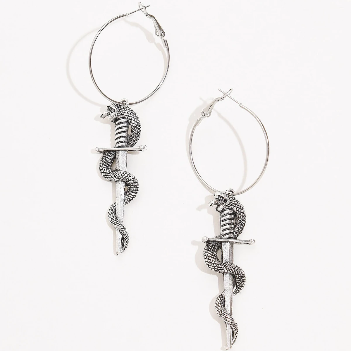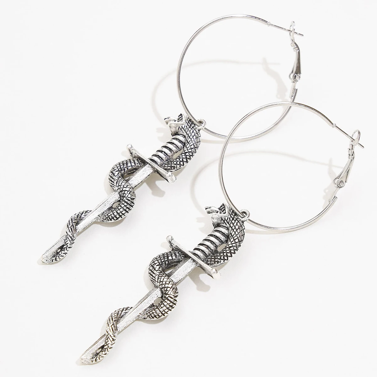 * Название:1 пара, панк, серебряный цвет, меч, змея, капельки для женщин