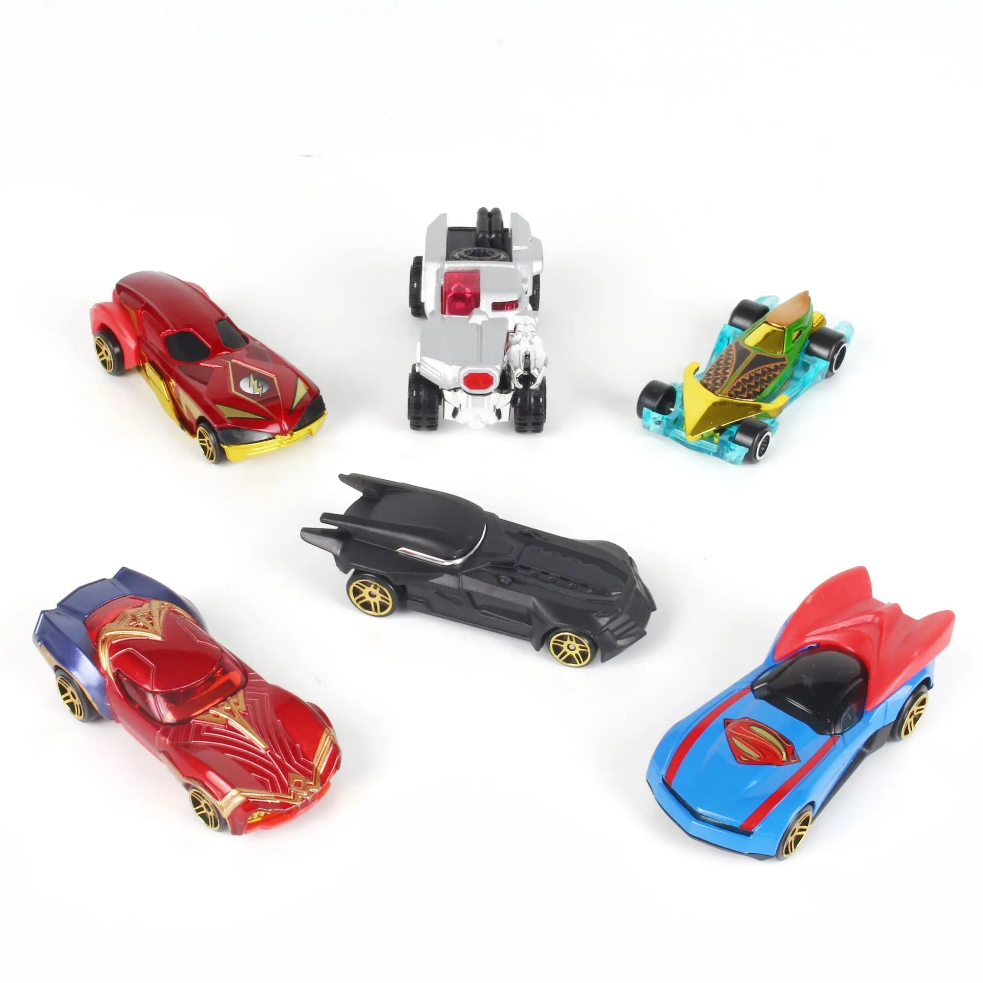 6 шт./партия игрушечные машинки Железный человек Мультфильм Капитан Америка Человек-паук Фигурки сплав автомобиль аниме модель куклы мальчик игрушки подарок для детей