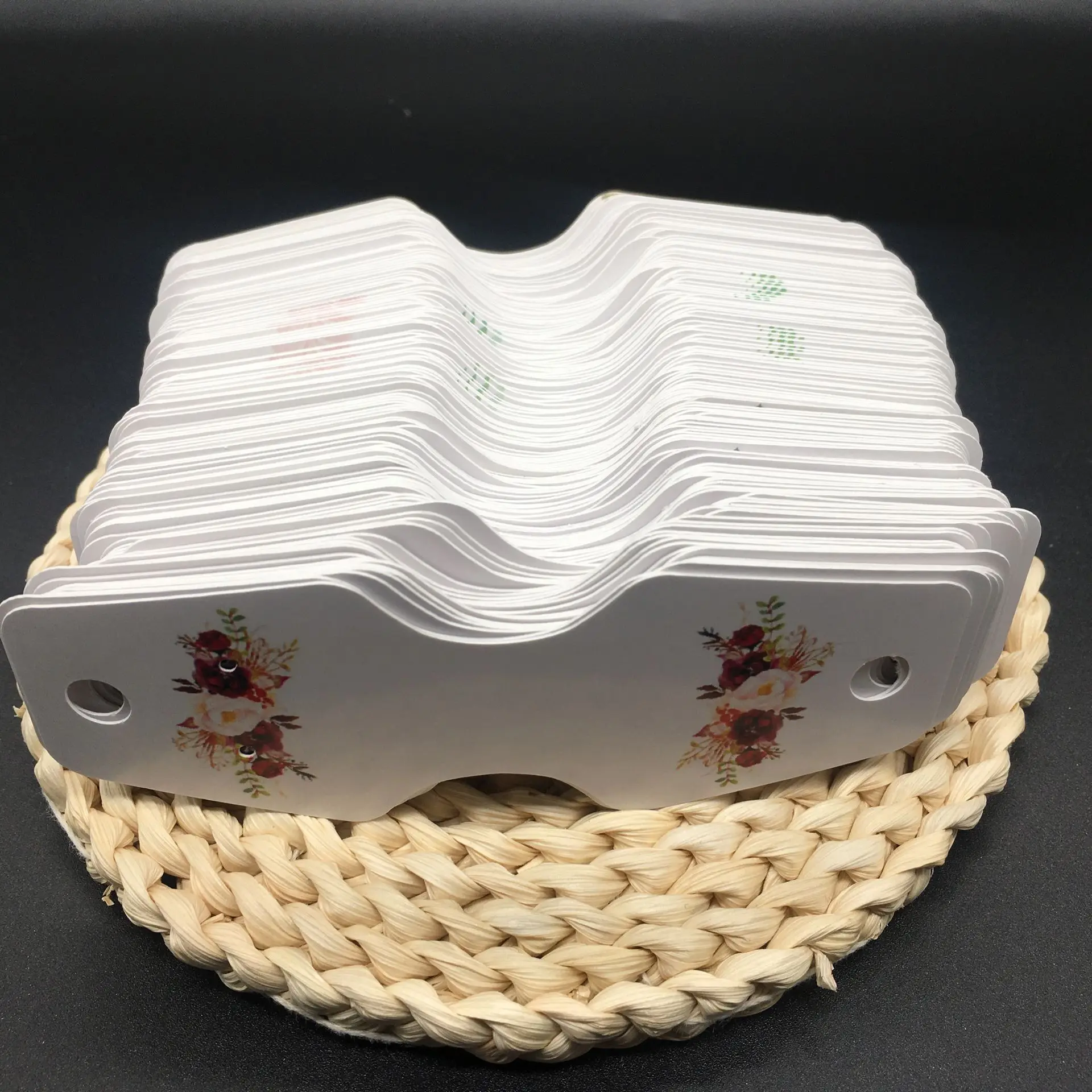 В: сколько будут стоить карты на заказ? О: Цена по ссылке включает 100 штук и услуги печати. 👉В: Я хочу черные или другие цветные карты, а не белые. О: мы можем Печатать Полноцветные, что означает, что передняя часть карты может быть любого цвета, который вы хотите, даже черный, розовый. Разница в том, что задняя сторона будет белой. 👉В: Могу ли я получить печать на обратной стороне? О: извините, мы предоставляем только одностороннюю печать. 👉В: Можно ли изменить размер отверстия или количество? О: извините, это исправлено. 👉В: это только для ожерелья? Ответ: нет, ожидается 3,5x2,5 карт только для серьги, три других предназначены для обоих (серьги и ожерелье) 👉В: насколько Толстые карты? Все наши карты изготовлены из жесткой бумаги 350 - 400 г/м2. В: насколько Толстые карты? О: все наши карты изготовлены из жесткой бумаги 250 г/м2. В: сколько времени потребуется? О: с тех пор это не в наличии продукт. Процесс производства занимает 3 дня. Время доставки будет зависеть от эффективности почтовой службы.