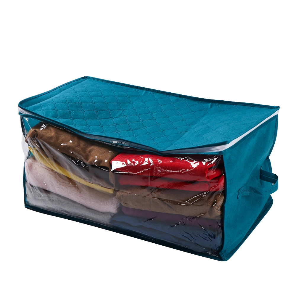 Цвет: синий, серый Размеры: 58x31x30cm Ручка: легко носить с собой и убирать с помощью ручек Прозрачное окно: вы можете легко узнать, что внутри с прозрачным окном Материал: изготовлен из нетканого материала, прочный и длительный срок службы Применение: подходит для хранения одежды, одеял, игрушек, фотографий, детской одежды и т. д. Складной: коробка складывается, легко носить с собой и хранить, когда она не используется Примечание: 1. Пожалуйста, учитывайте разницу в 1-2 см из-за ручного измерения. 2. Из-за различных дисплеев и другого светильник, изображение может не отражать фактический цвет товара.