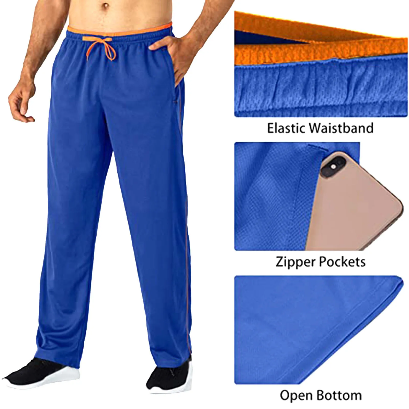 Мужские Легкие беговые штаны с карманами на молнии, эластичная резинка на талии, спортивные штаны с открытой подошвой