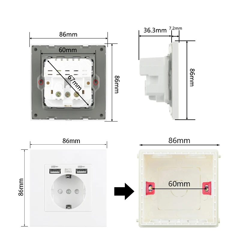 Размер переключателя (Д * Ш): 86 мм * 86 мм